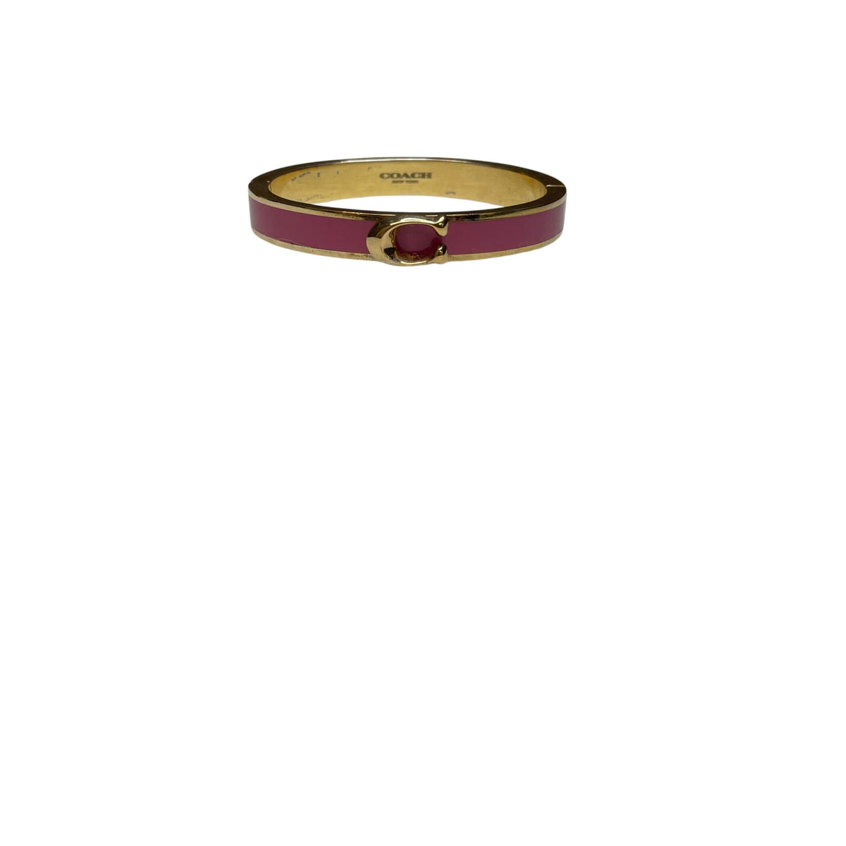 Coach Womens Gold Burgundy Enamel C Logo Hinged Bangle Bracelet Size M/L