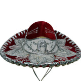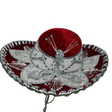Pigalle Red & Silver Adult Mexican Sombrero Hat Velour Embroidered Traditional Festive