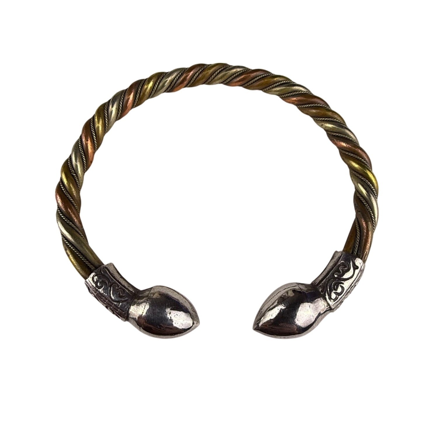Twisted Mixed Metal Cuff Bracelet Rope Design Brass Copper Silver Tone Adjustable
