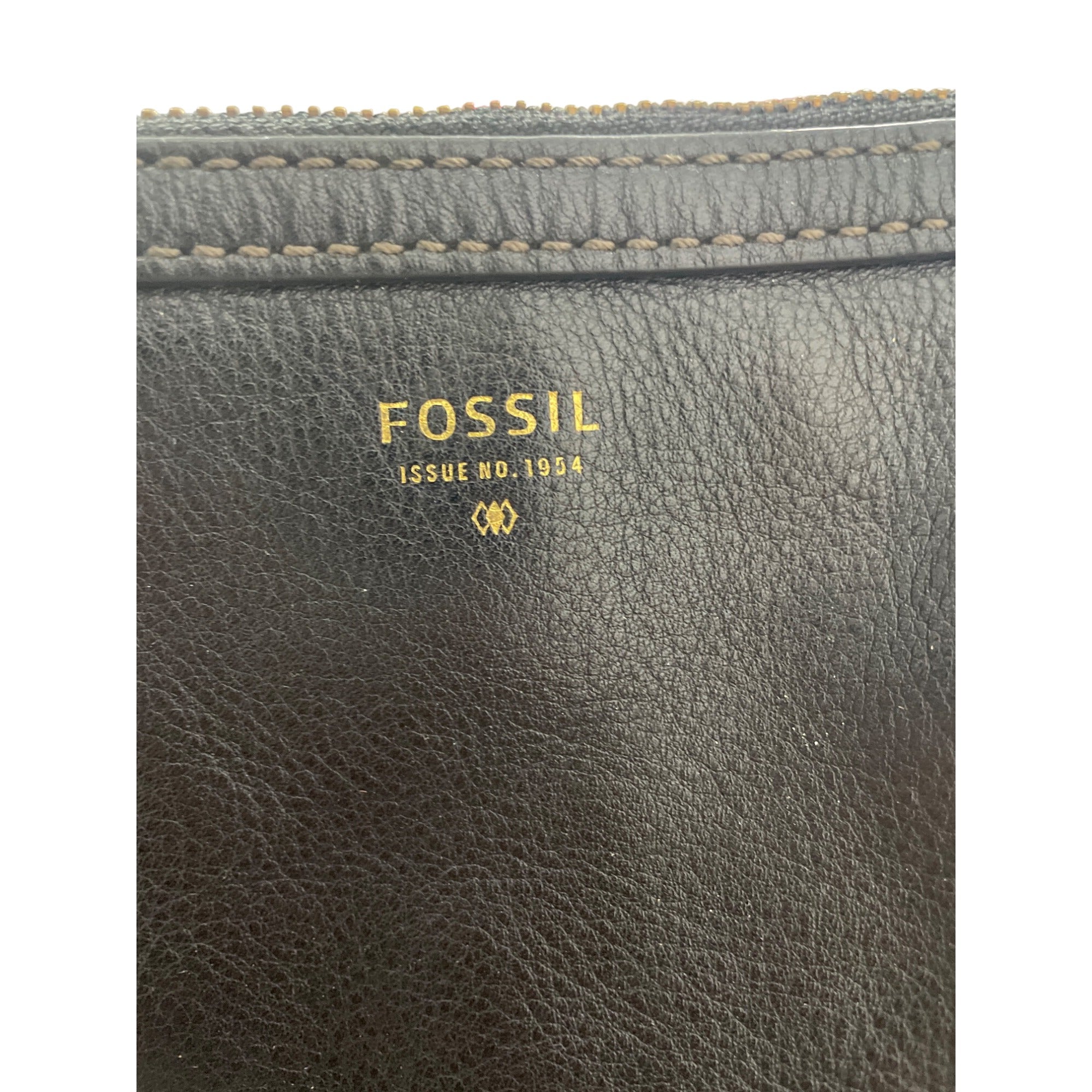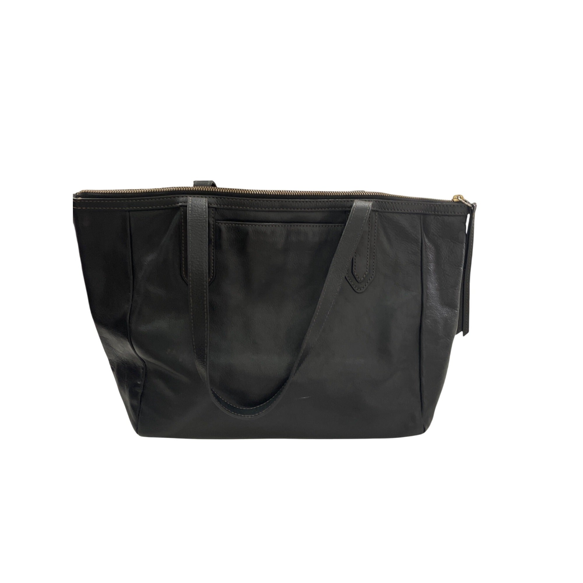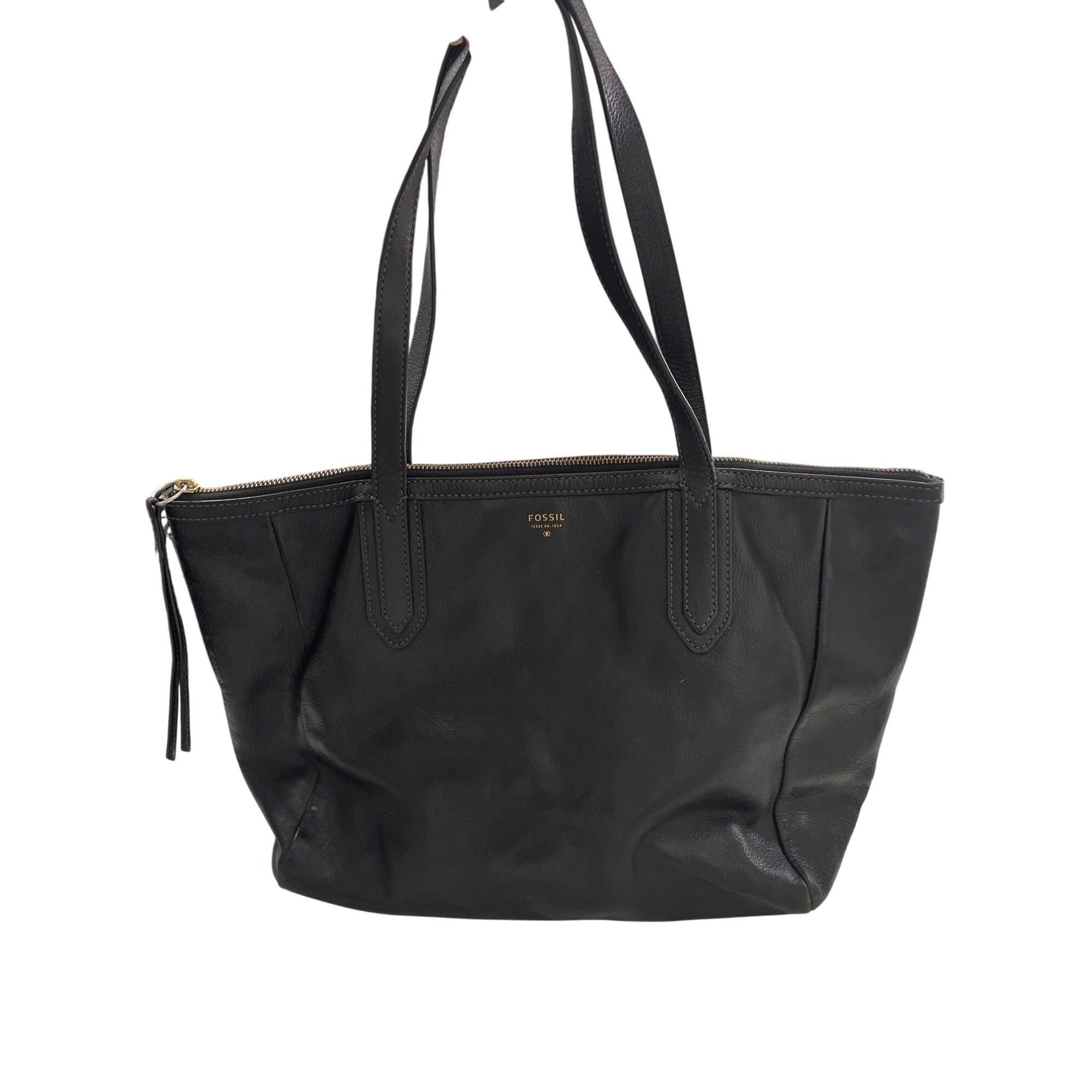Fossil Womens Black Leather Tote Bag With Handles & Zip Closure