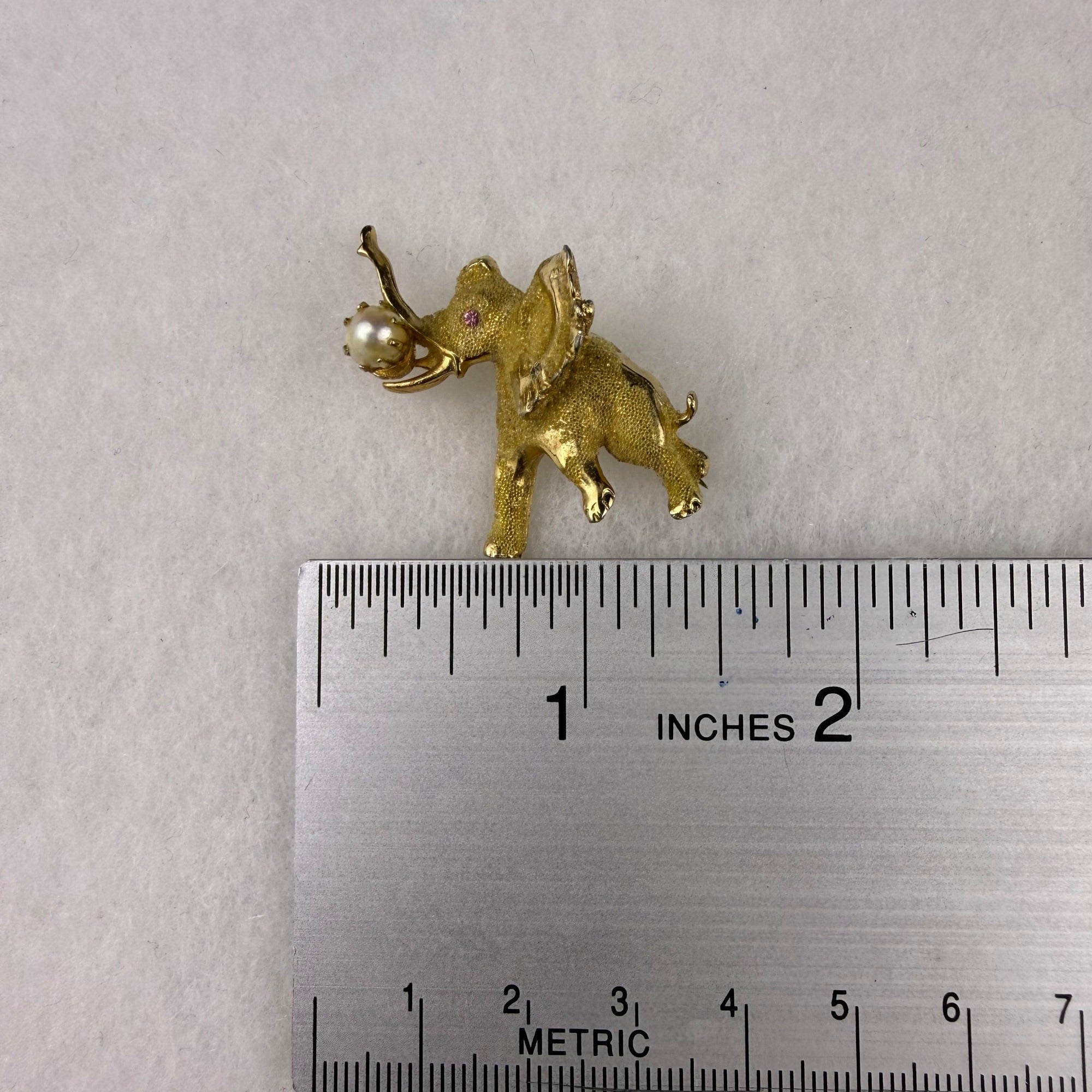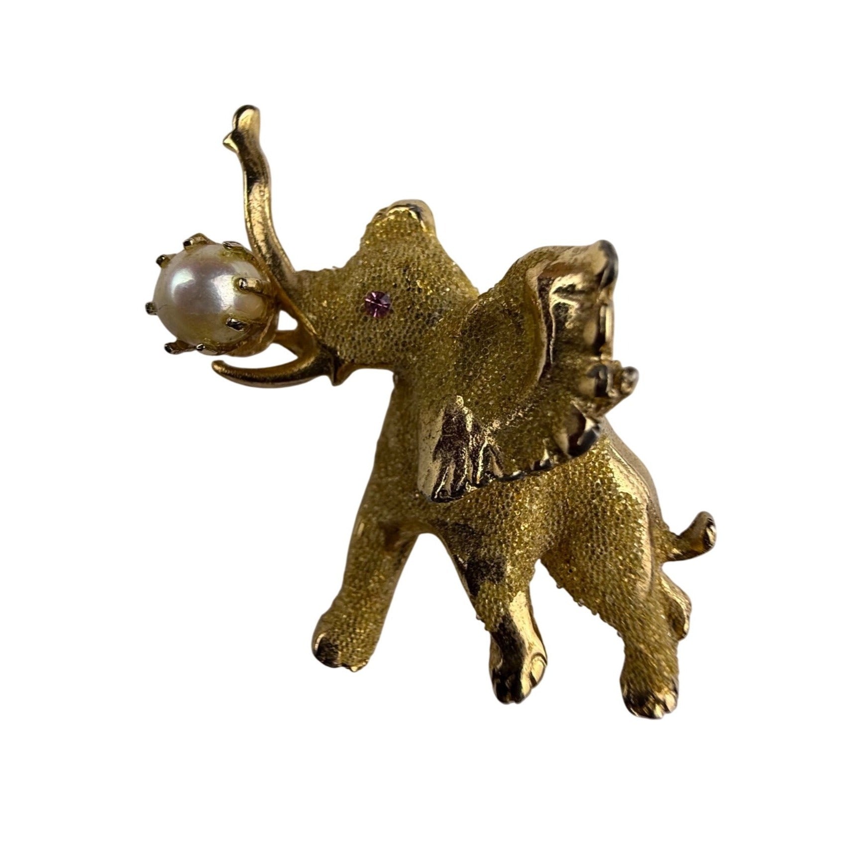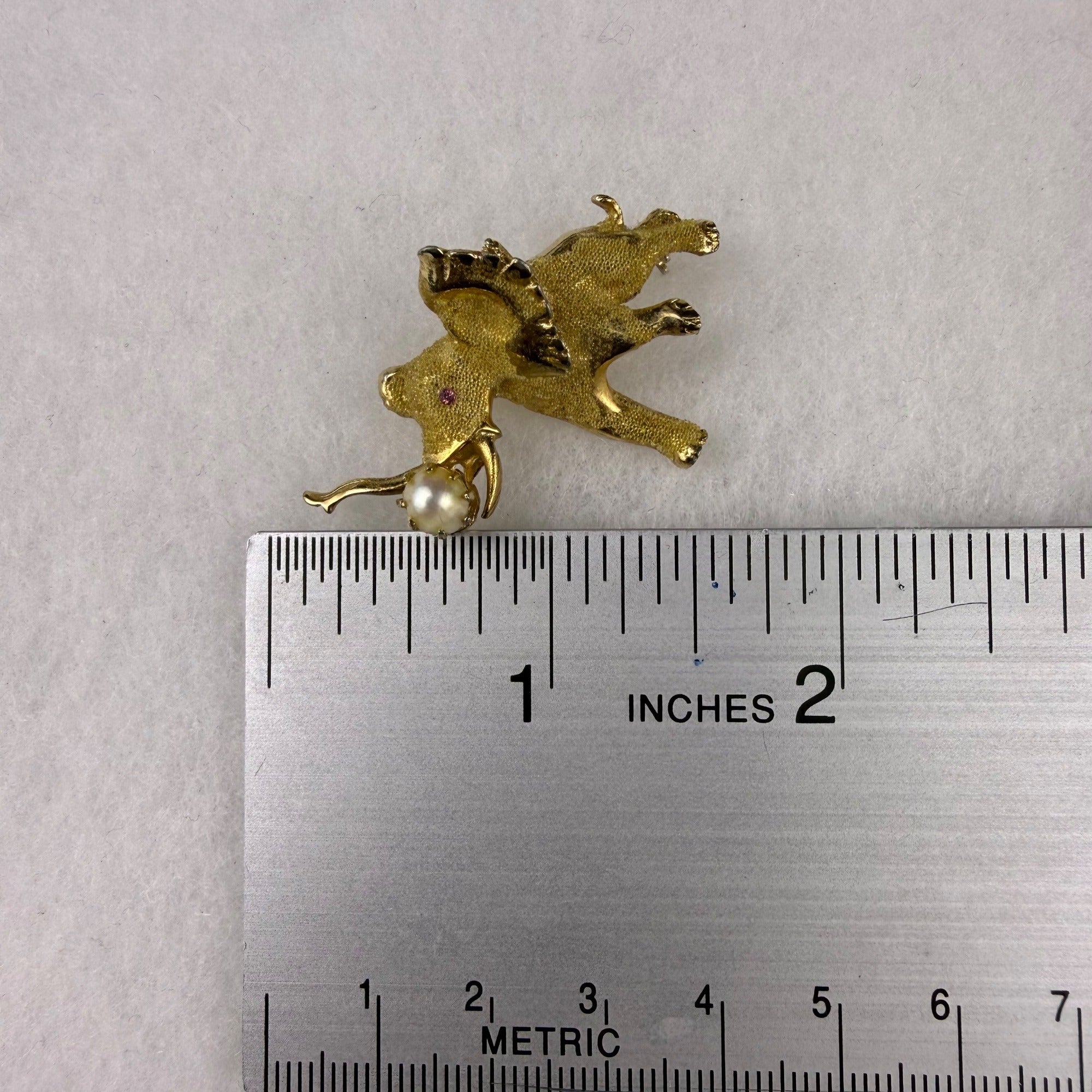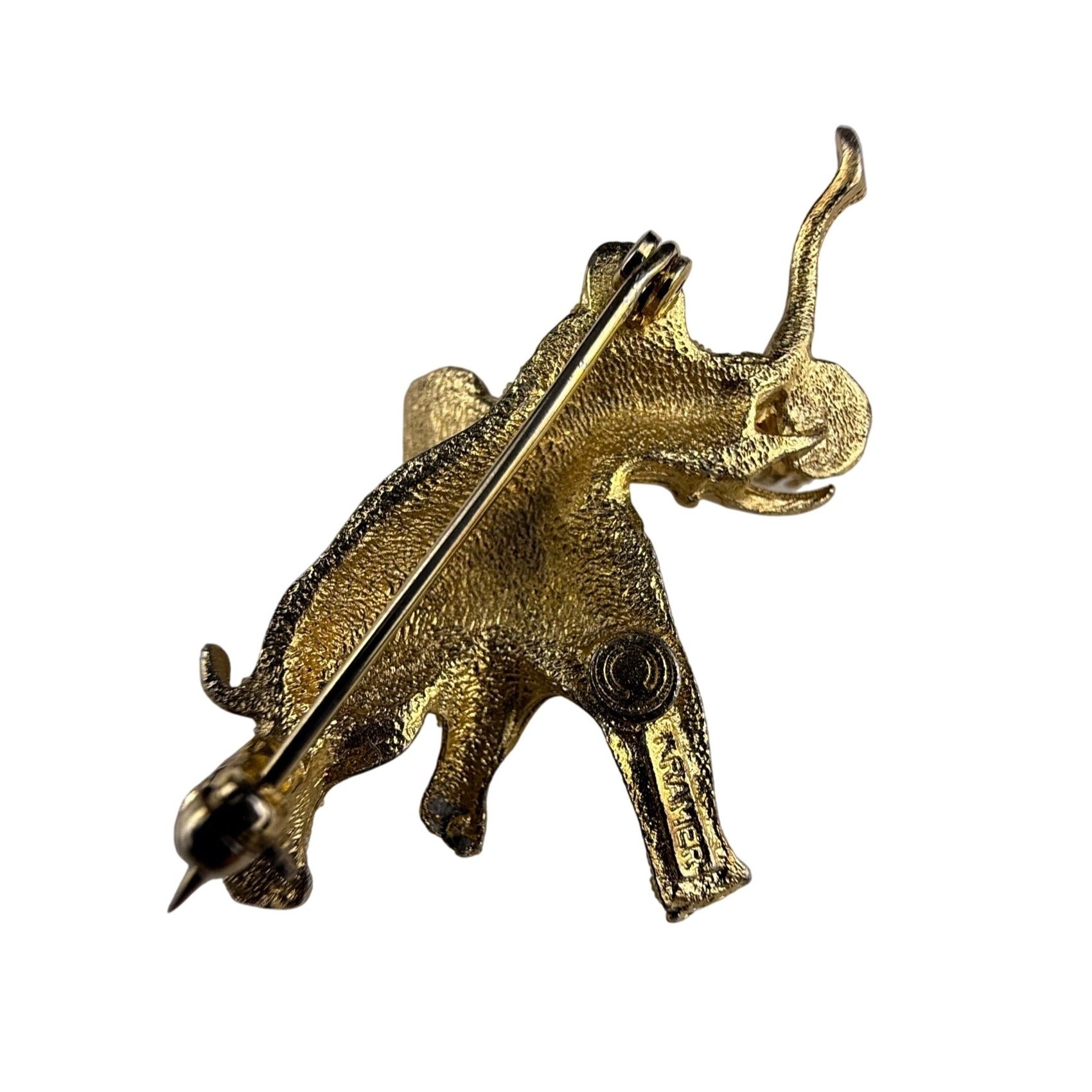 Kramer Women’s Gold Tone Elephant Pin Brooch Rhinestone Faux Pearl Small Size