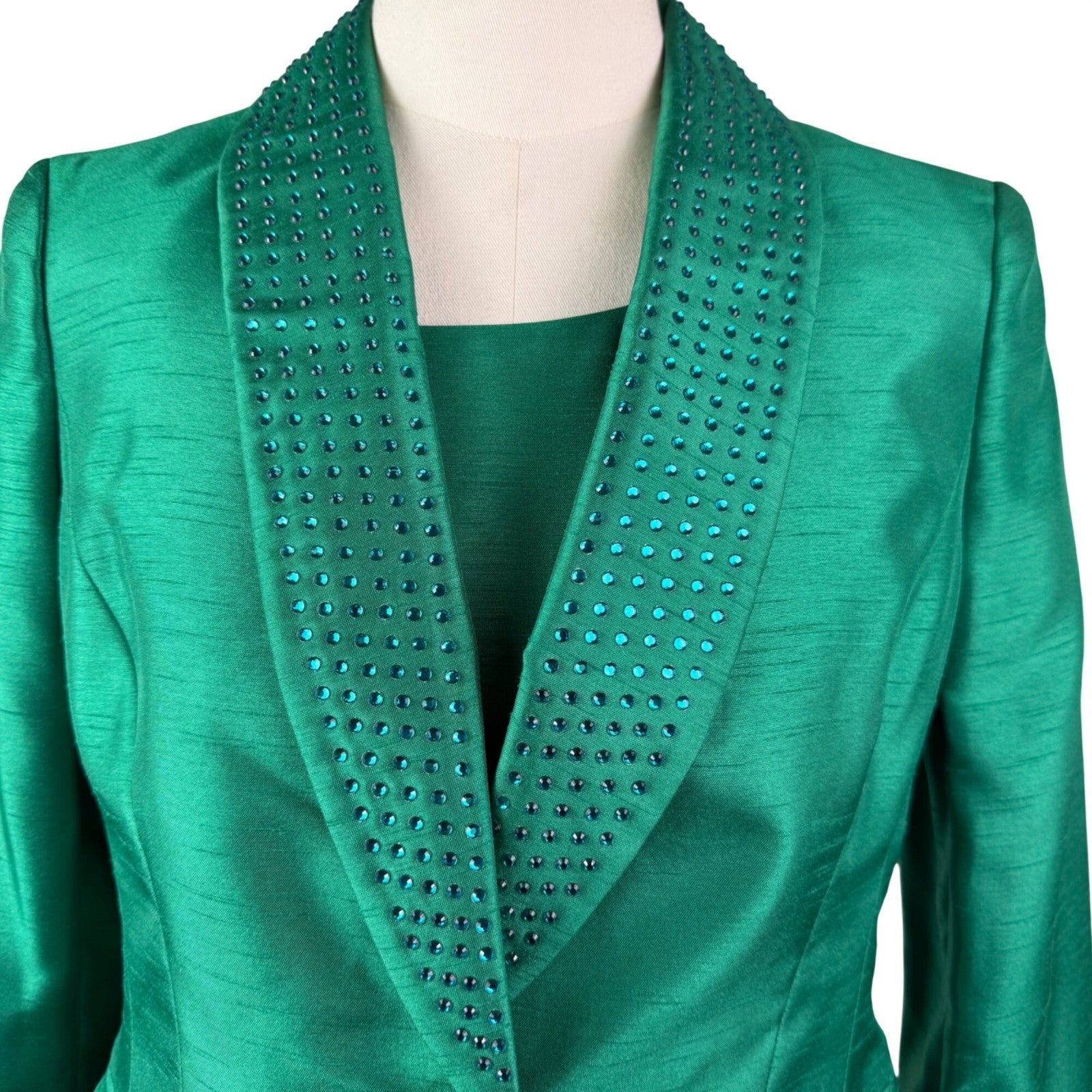 Albert Nipon Womens Green Dress & Jacket Set Elegant Formal Outfit Size 4