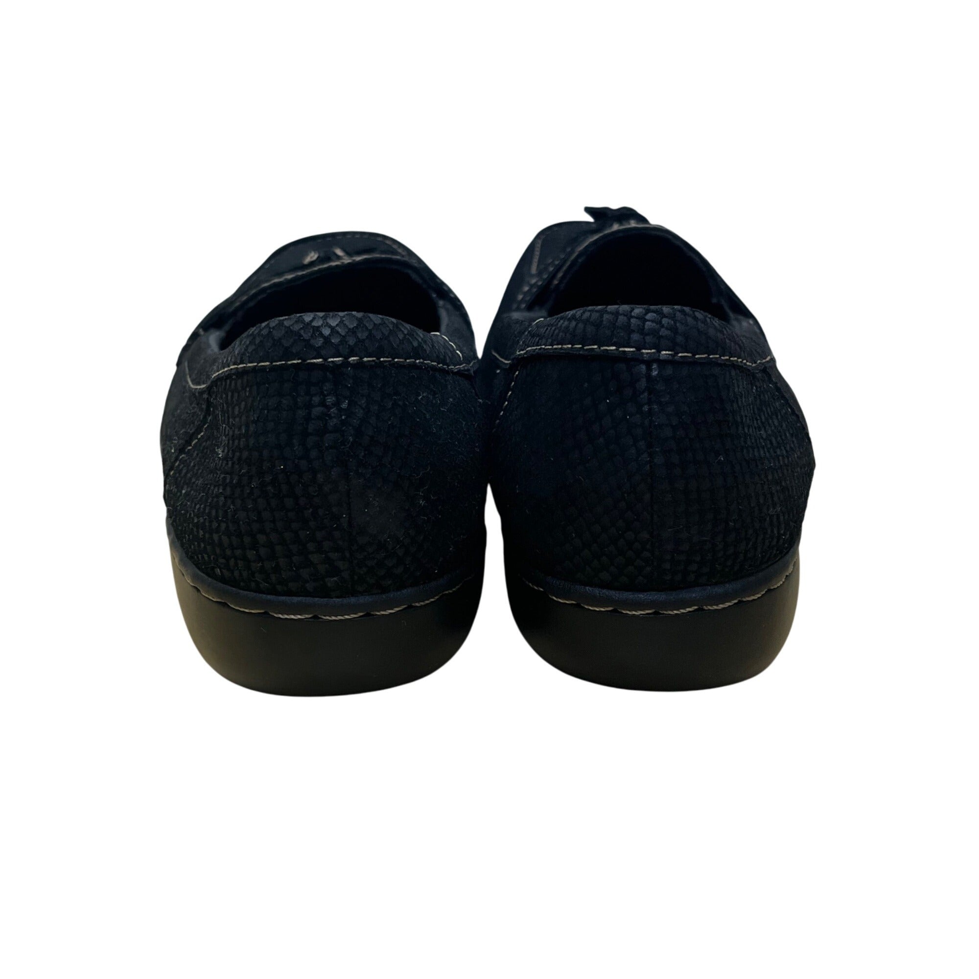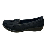 Clarks Black Scales Design Slip-On Bow Detail Cushion Soft Loafers Sz 9XW