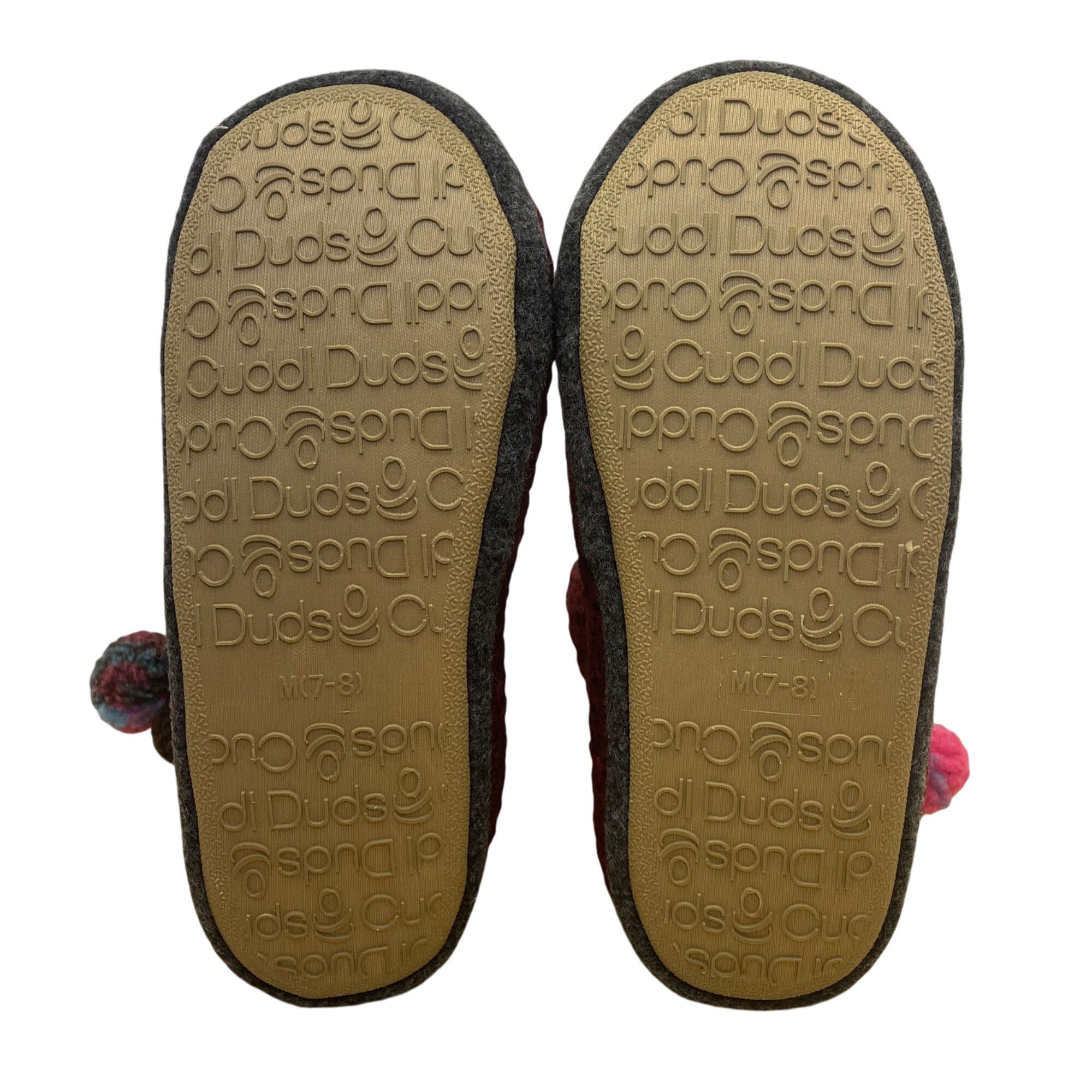 Cuddl Duds Women’s Red Deep Wine Waffle Knit Pom-Pom Slipper Booties Size M 7-8