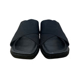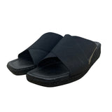 Comfortable wedge sandals with black fabric stretch upper, slip-on design, and espadrille-style sole. Made in Spain.