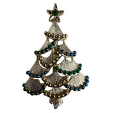 Gerrys Gold Tone Metal Christmas Tree Brooch Pin Festive Green & Blue Accents