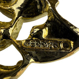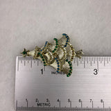 This Gerry's Women's Gold Tone Metal Christmas Tree Brooch Pin showcases timeless holiday charm with a festive tree design. Featuring intricate gold-tone detailing, accented by green and blue ornaments, and a star adorned with a green rhinestone topper, this brooch captures the spirit of Christmas. It’s lightweight and easy to wear, secured uniquely with a reliable pin backing. Gerry's signature on the reverse ensures authenticity of this vintage accessory.