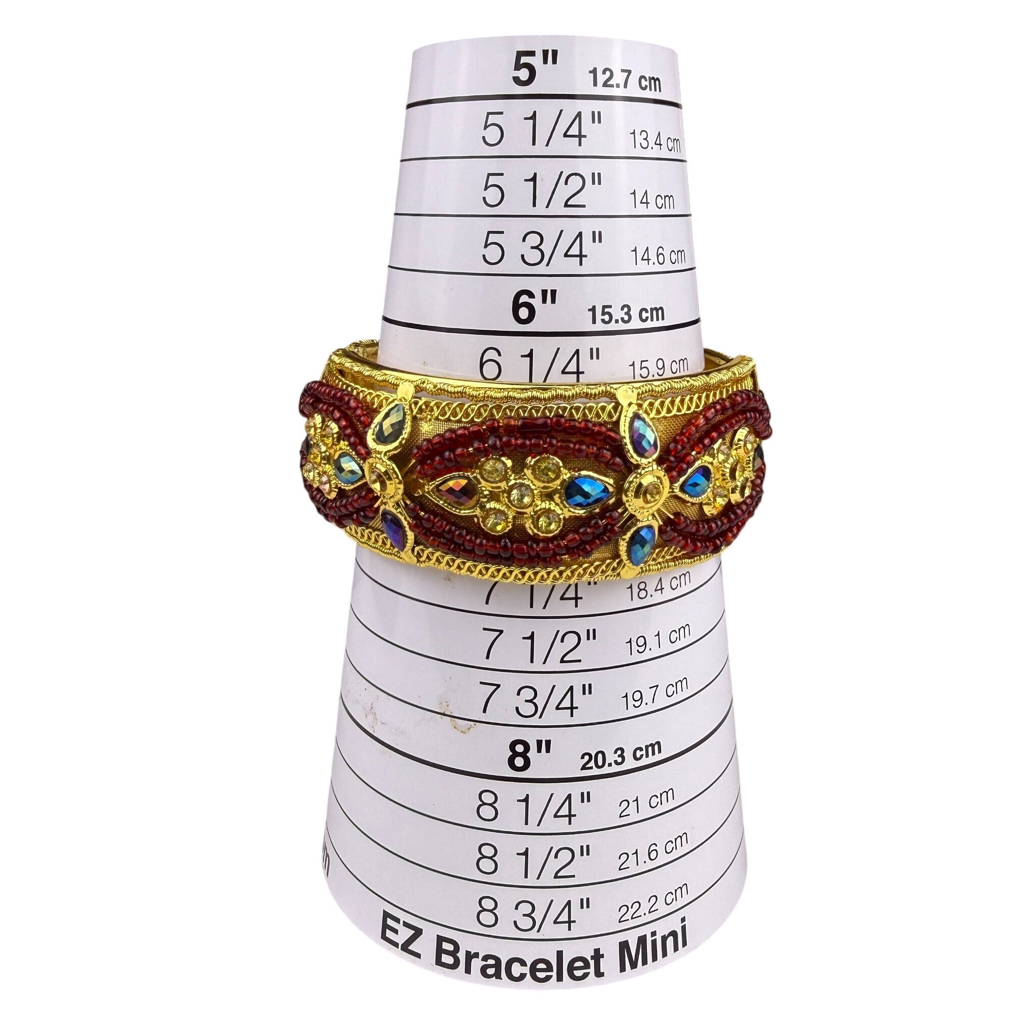 Gold Tone Multi-Color Beaded Womens Hinged Cuff Bracelet With Rhinestones