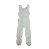 Handmade Baby Knitted White Romper w/ Footies Embroidered Floral Accents 0-3 M