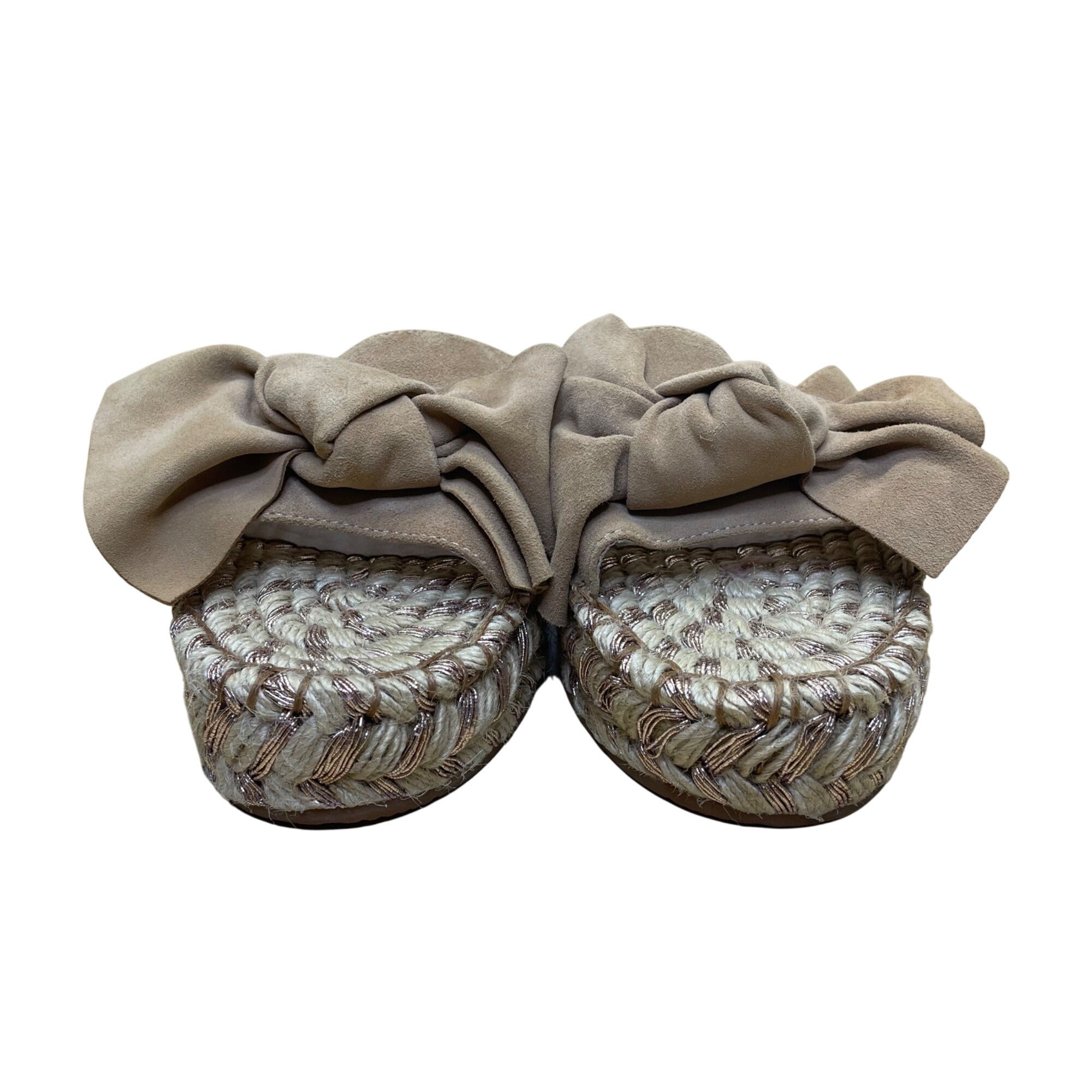J Slides Women’s Tan Suede Bow Copper Detail Rope Sole Casual Espadrilles Size 8