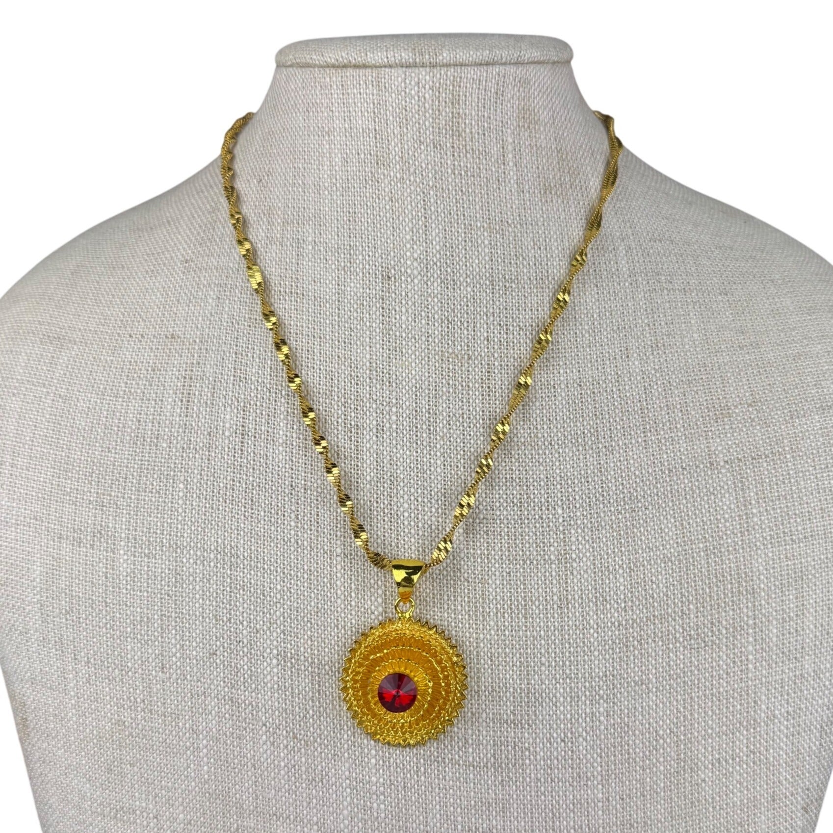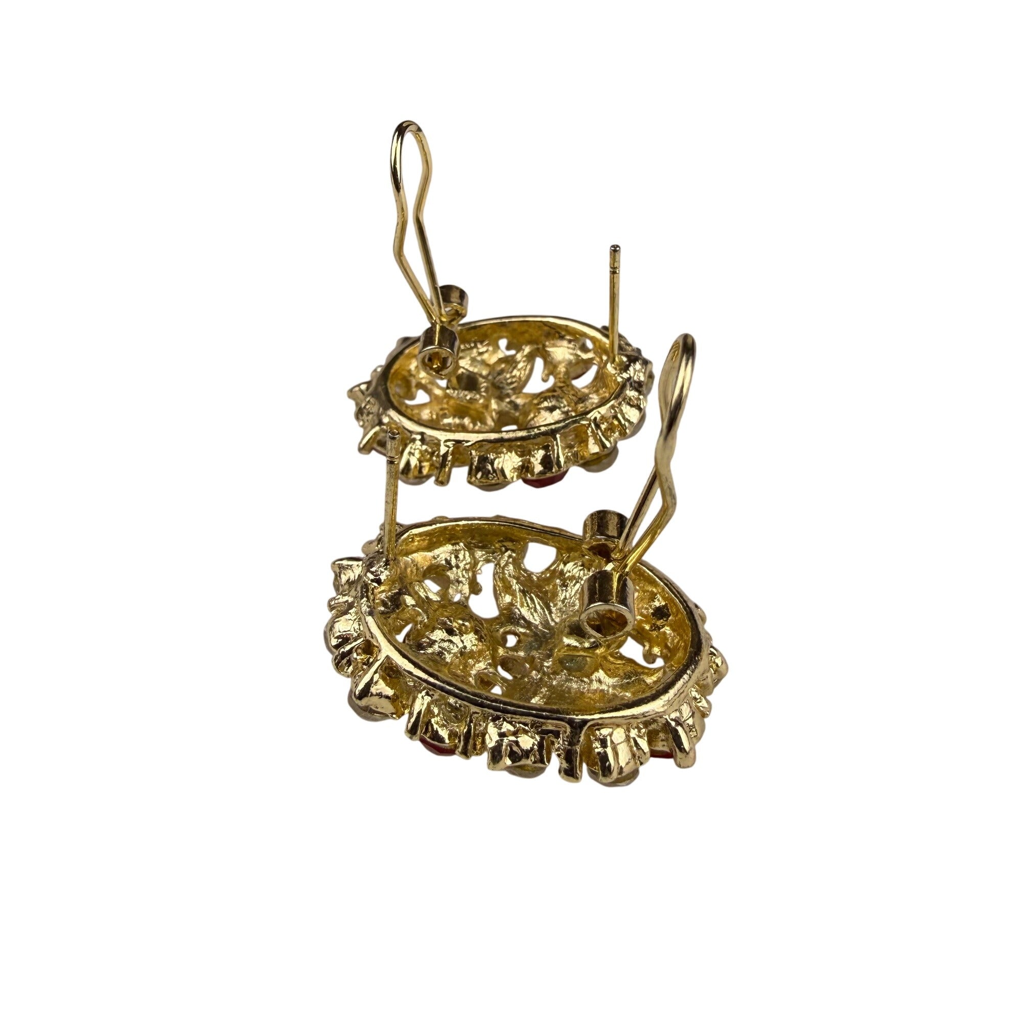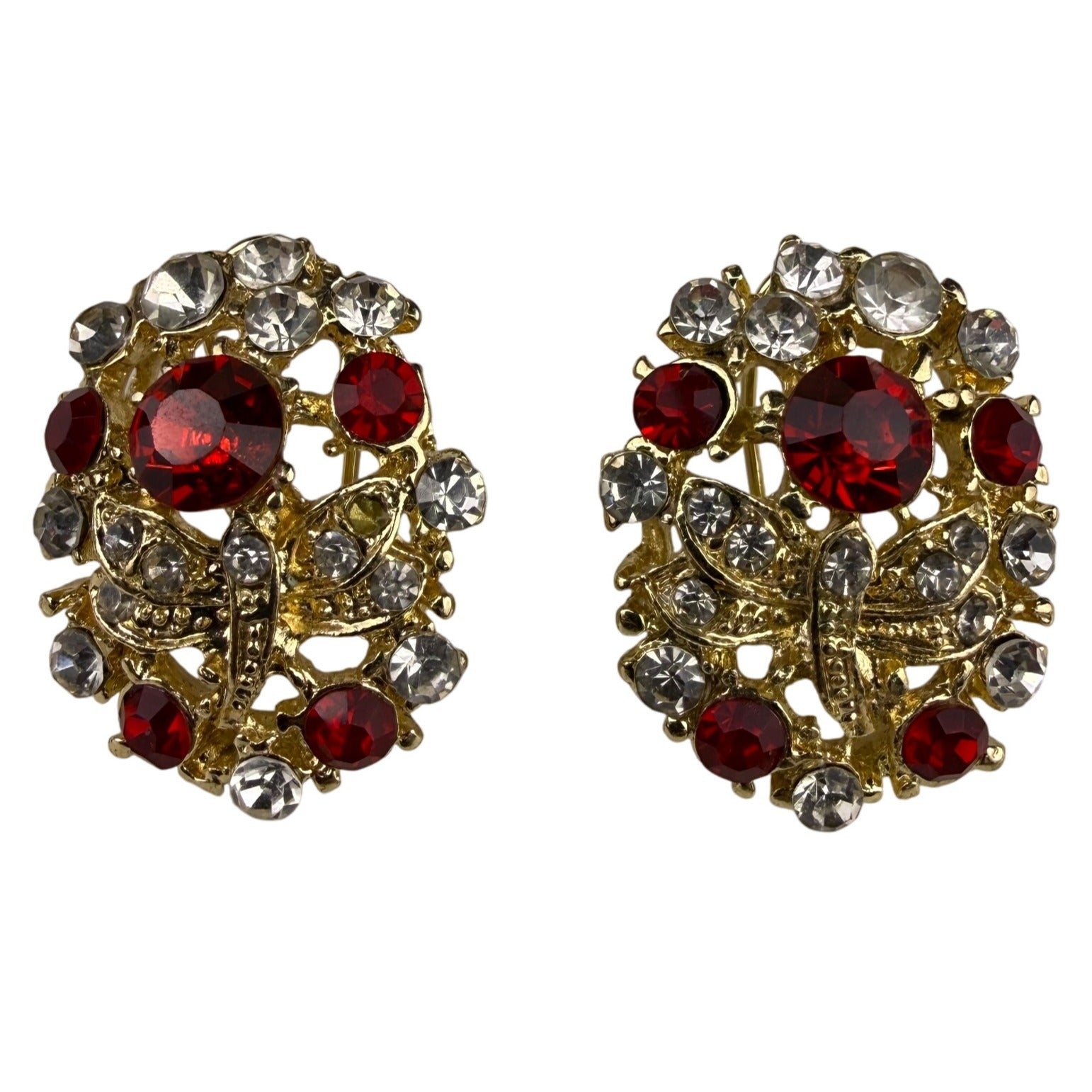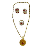 JH Womens Red & Gold Tone Jewelry Set Earrings Necklace Ring Rhinestone