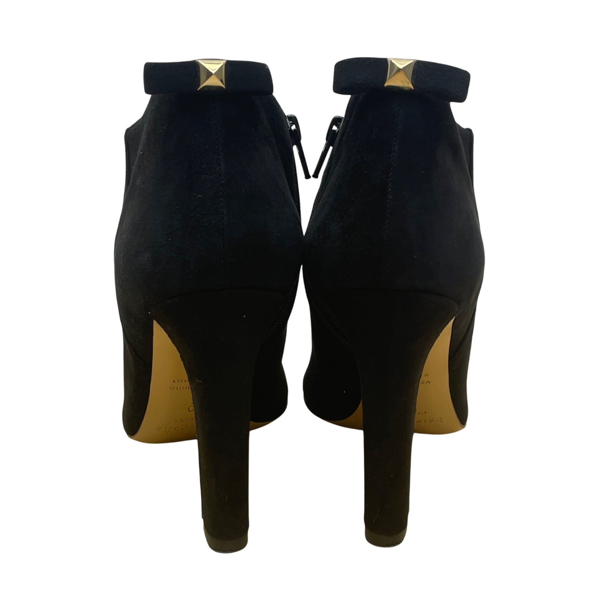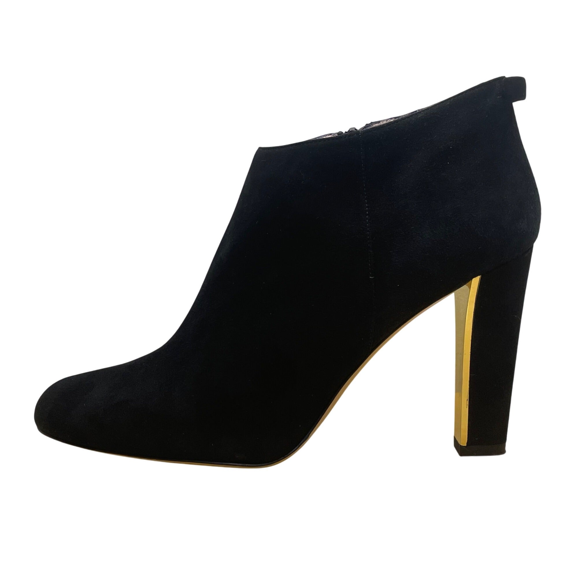 Kate Spade Women’s Black Suede Gold Accent High Heel Netta Ankle Booties Sz 10B