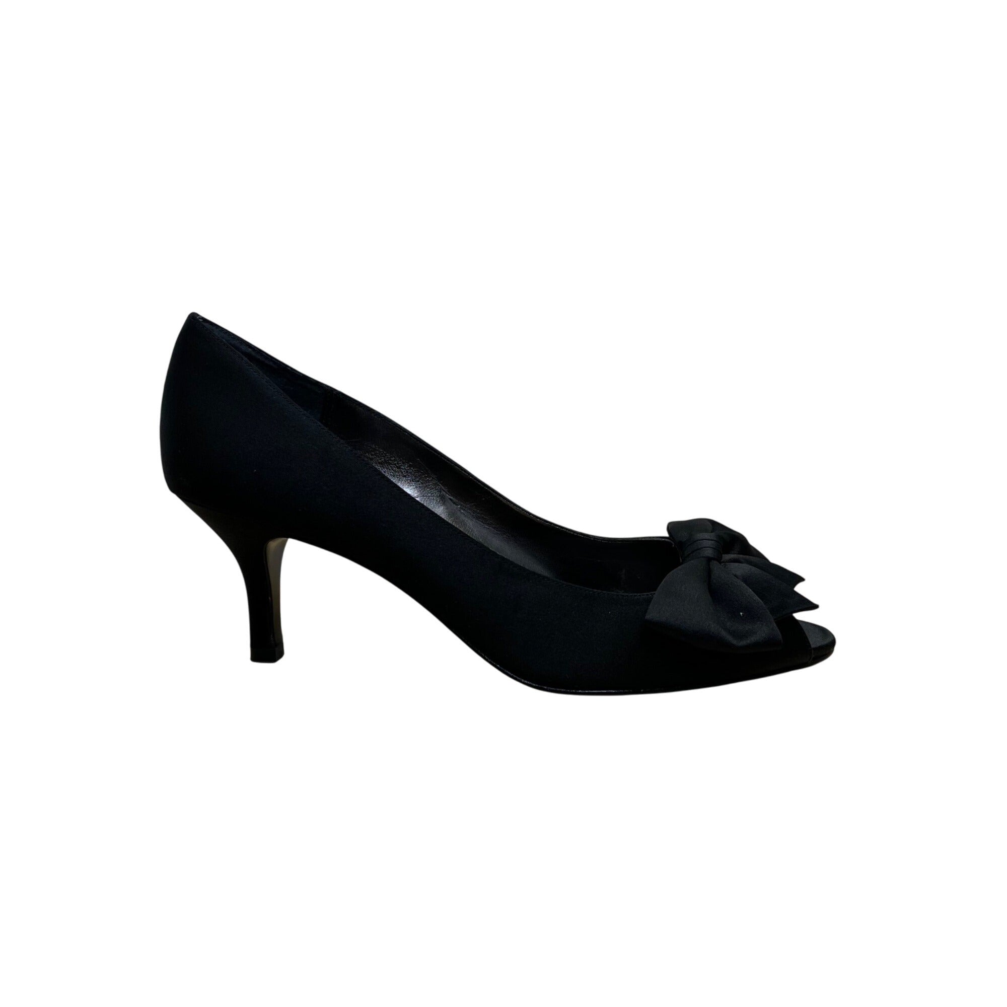 Kelly & Katie Women’s Black Fabric With Bow Accent Peep-Toe Pumps Size 8M