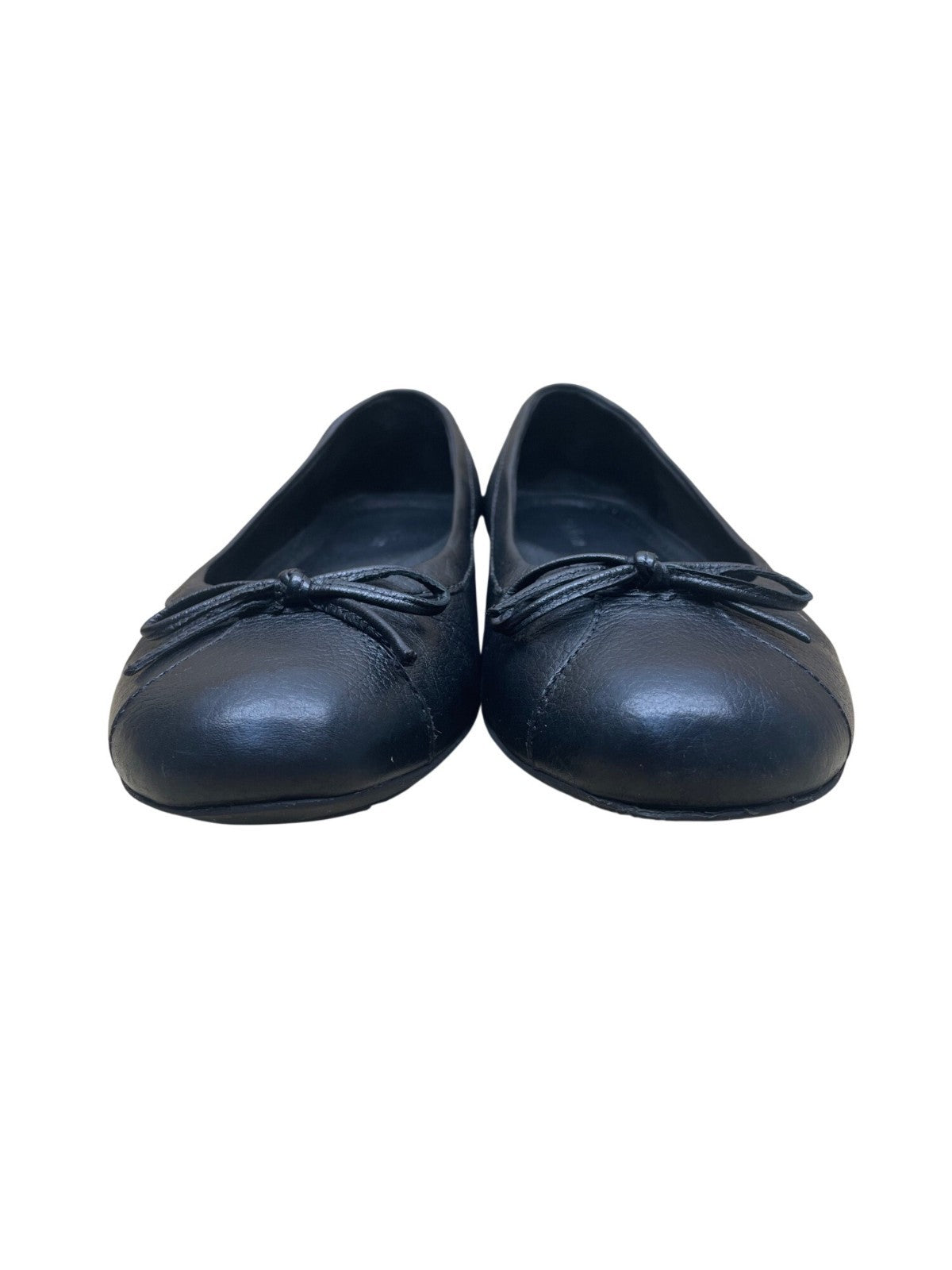 LL Bean Women’s Black Leather Bow Accent Classic Slip-On Ballet Flats Size 8M