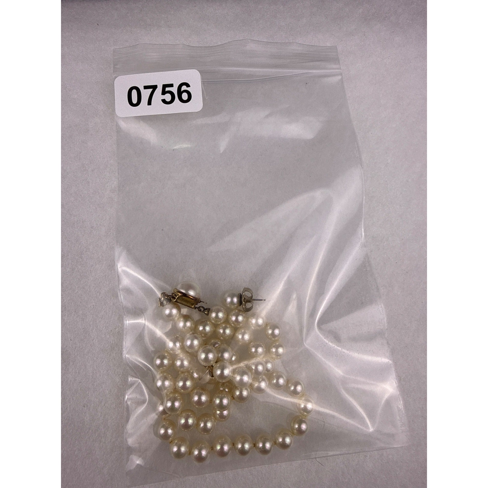 Majorica Womens Gold Tone Faux Pearl Necklace & Earrings Set Spain Signed