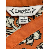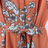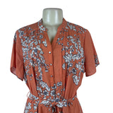 Nanette Floral Rust Short Sleeve Tie Waist Button Front Women's Dress Sz 12