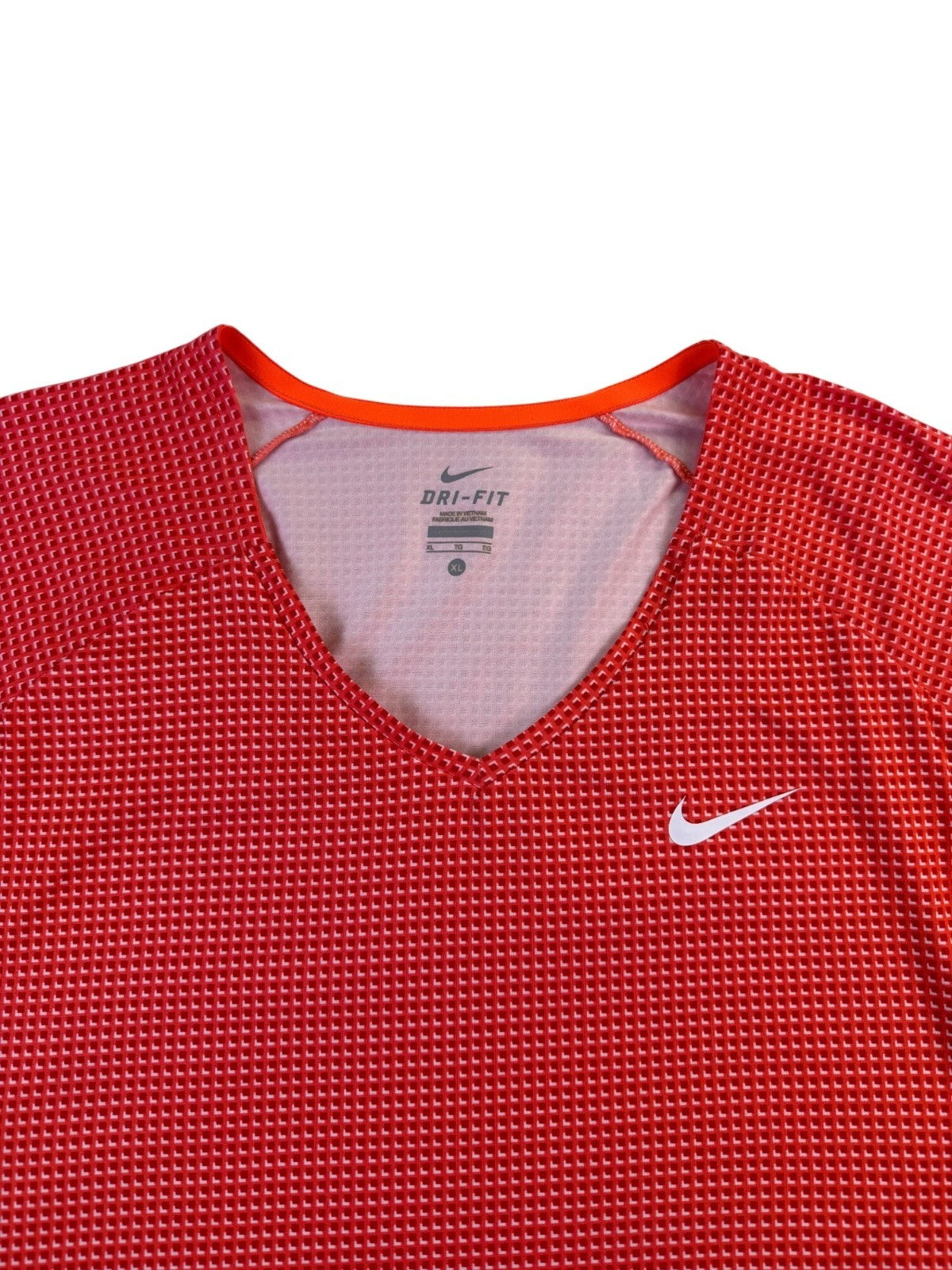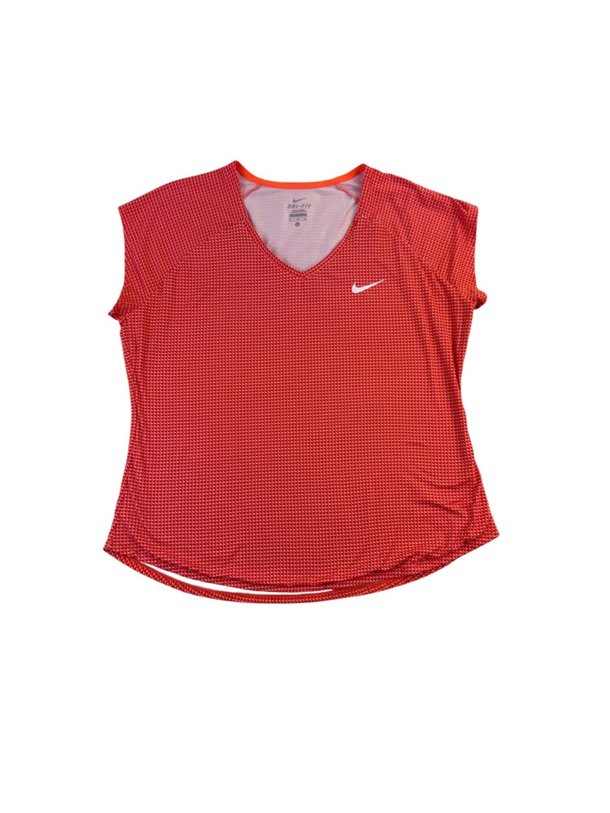 Nike Womens Red Dri-FIT Short Sleeve V-Neck Activewear Top Size XL