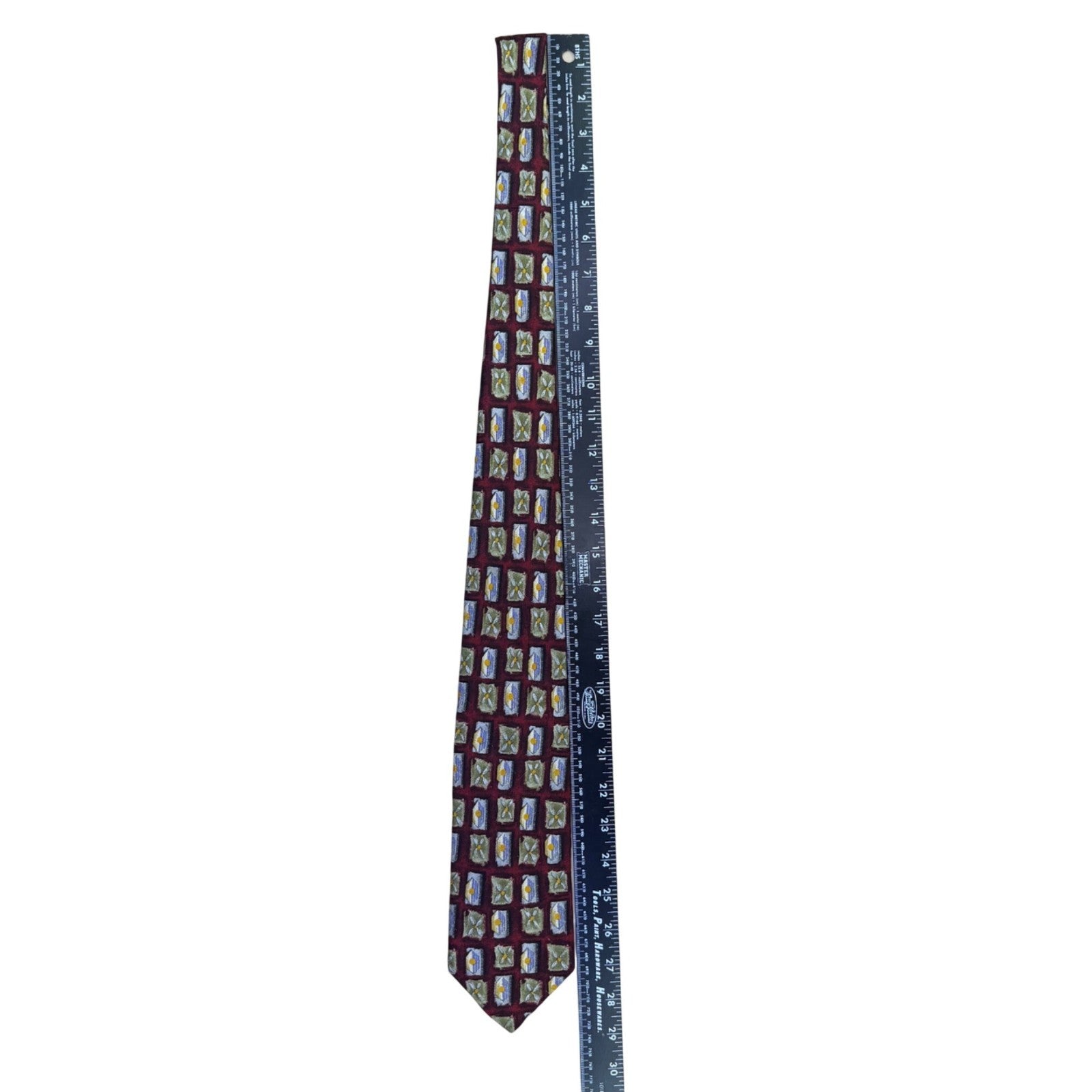 Robert Talbott Mens Burgundy Silk Floral & Geometric Print Tie Hand-Sewn USA