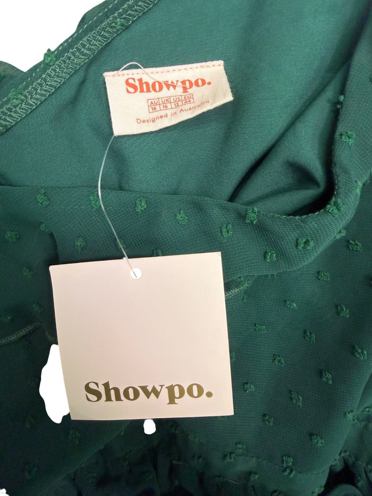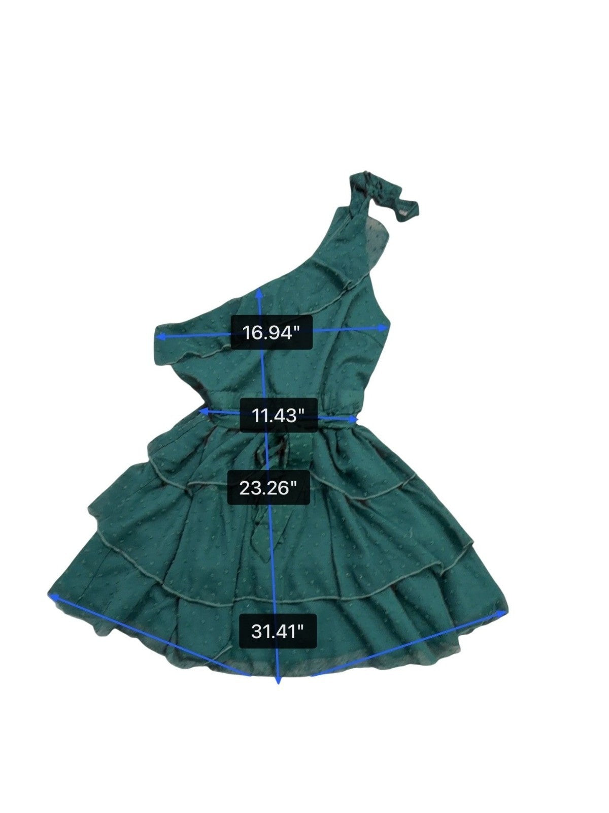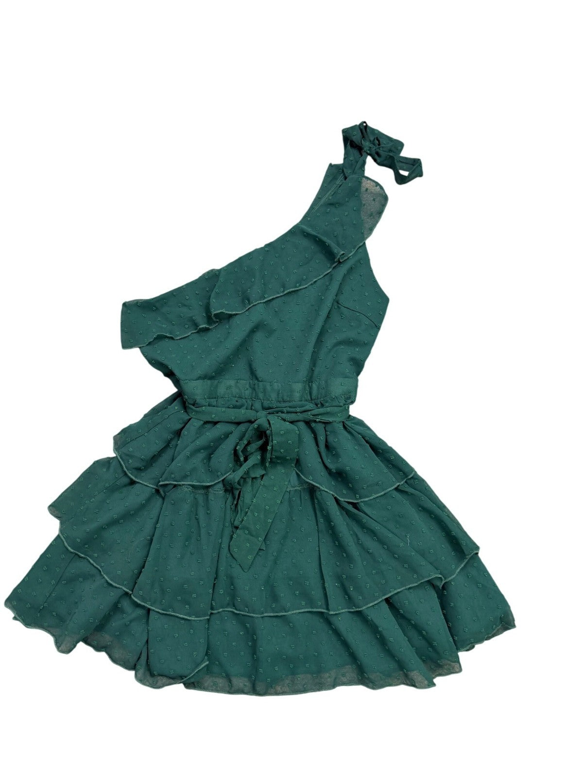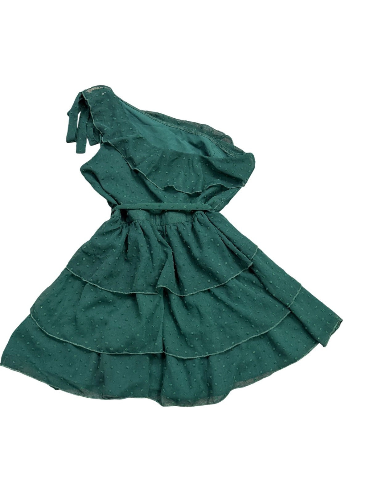 Showpo Womens Green One-Shoulder Tiered Mini Dress Ruffled & Belted Size 12