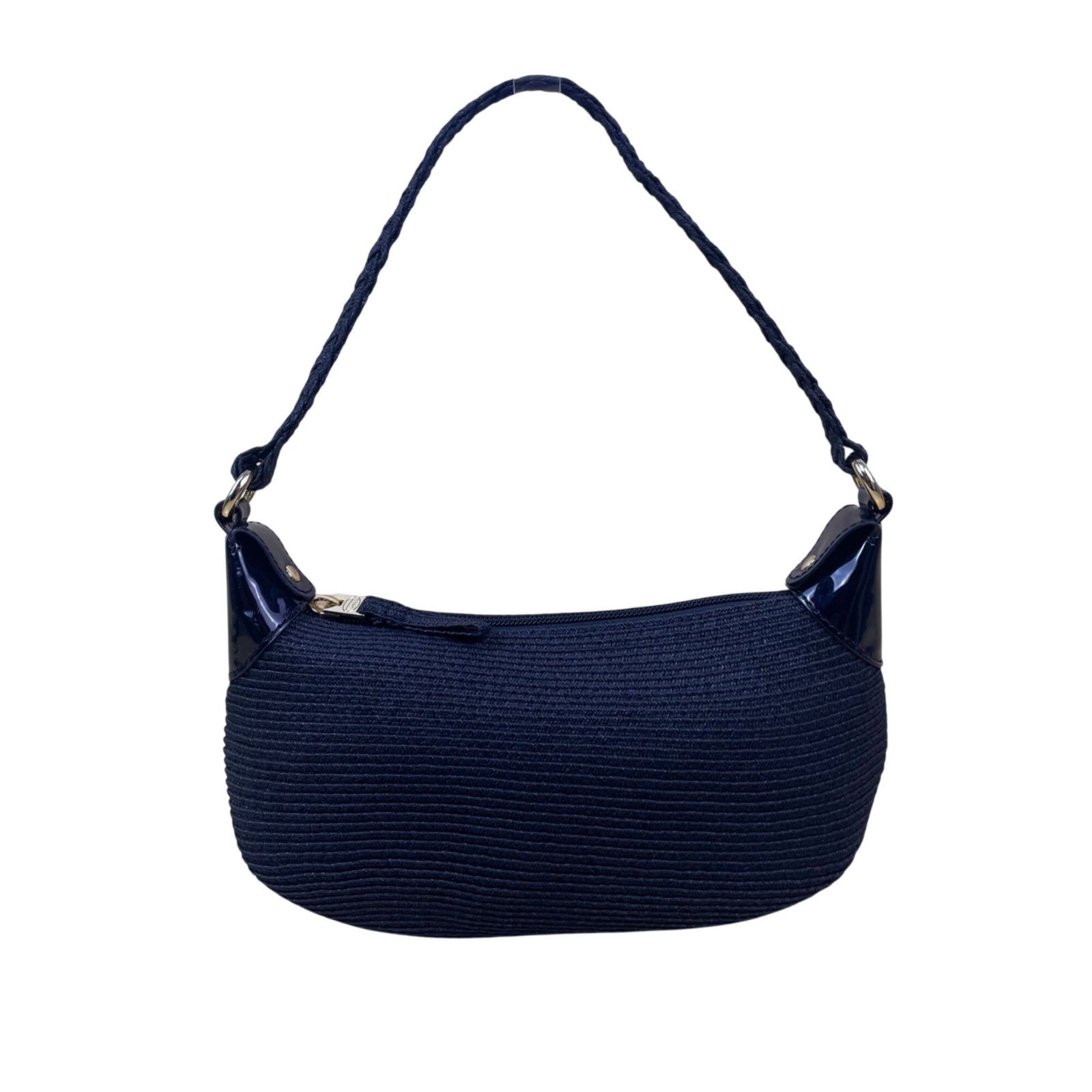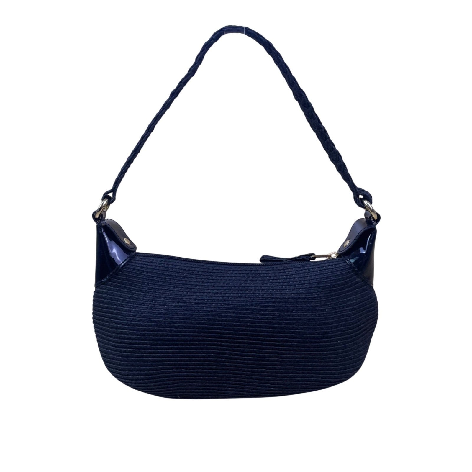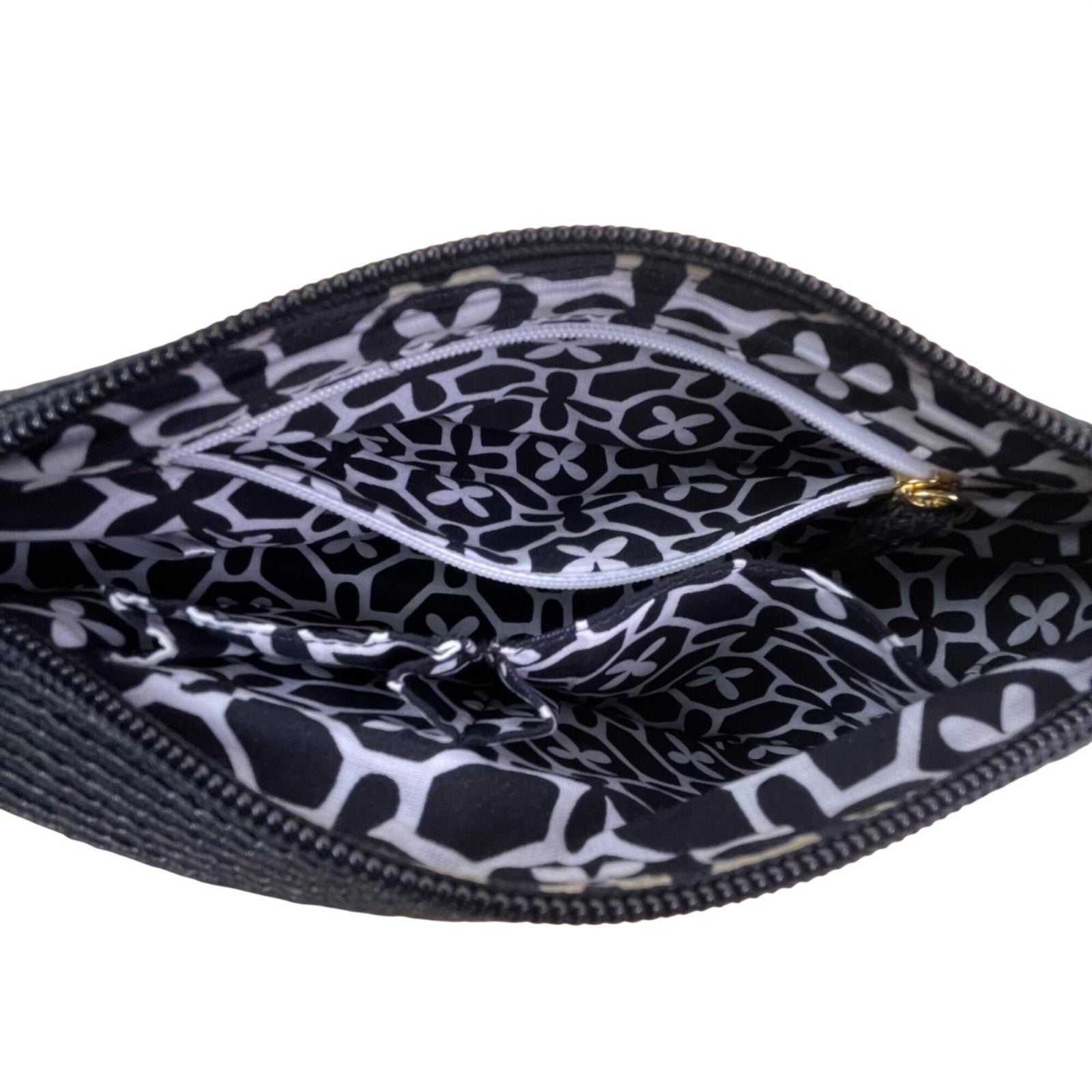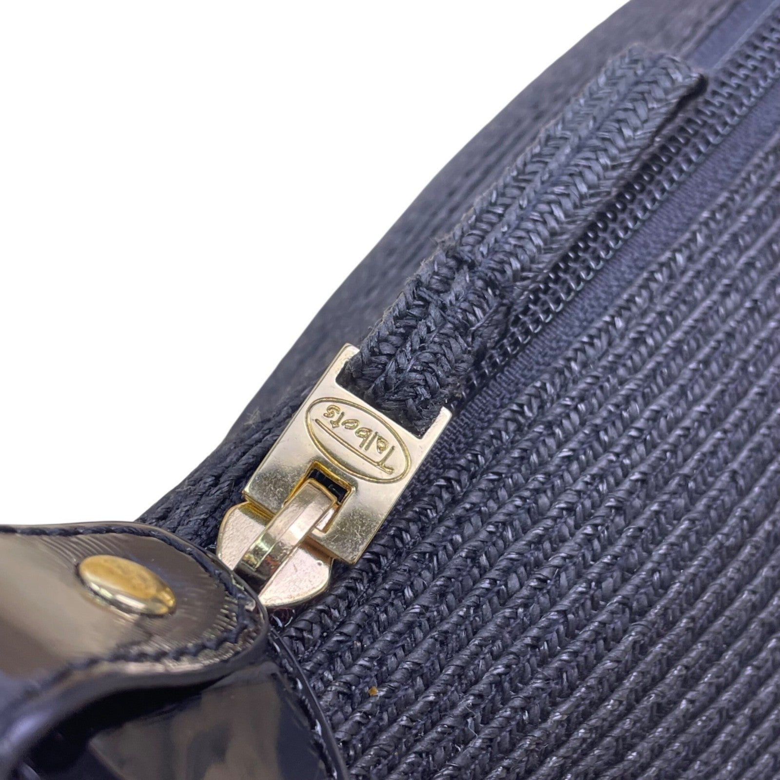 Talbots Women’s Black Braided Handle Faux Leather Trim Zip Closure Shoulder Bag