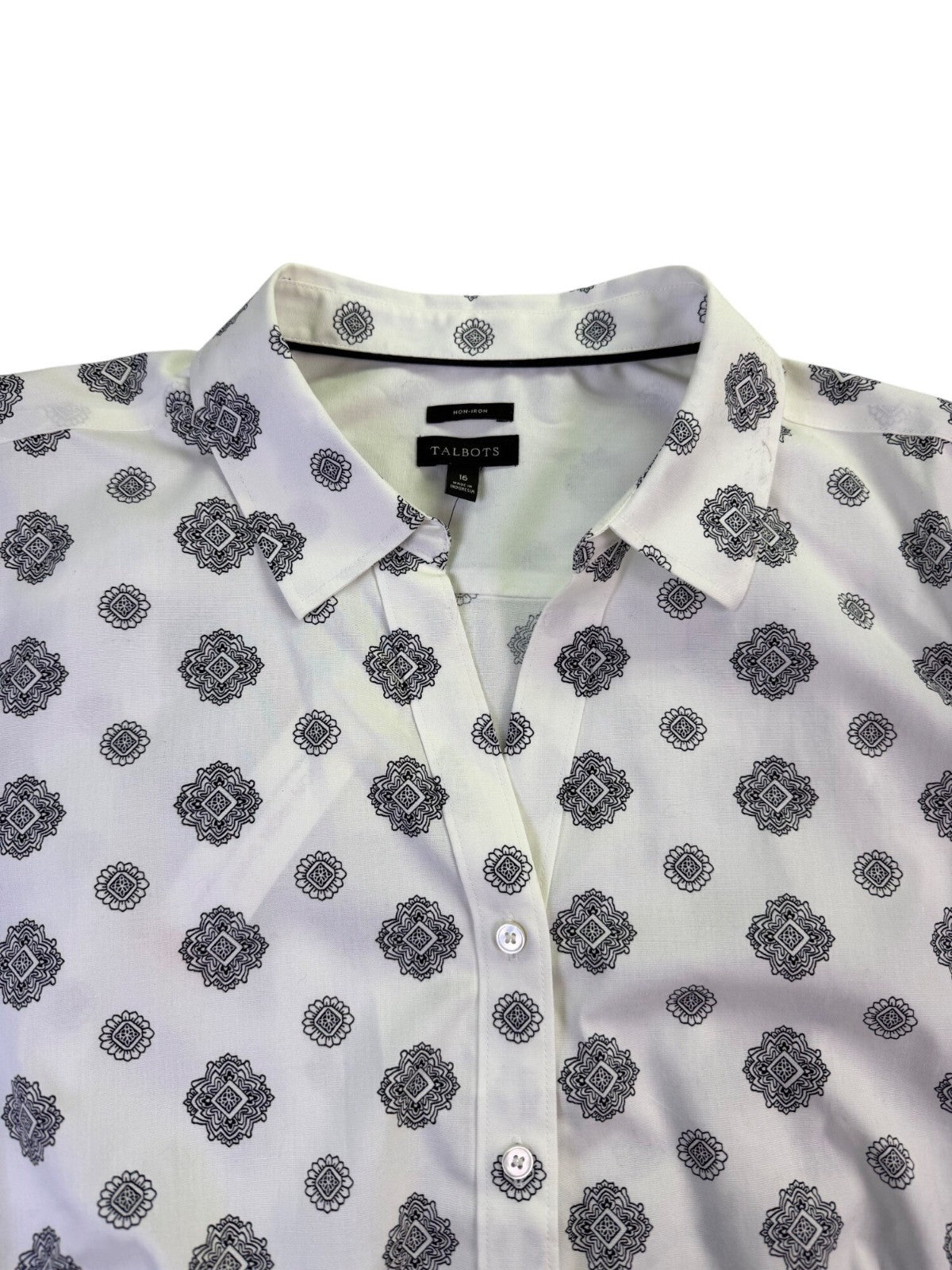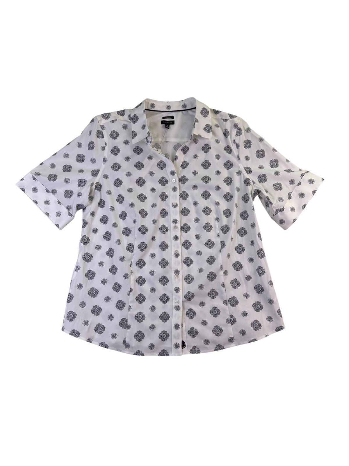 Talbots Womens White Non-Iron Short Sleeve Button-Down Shirt Size 16