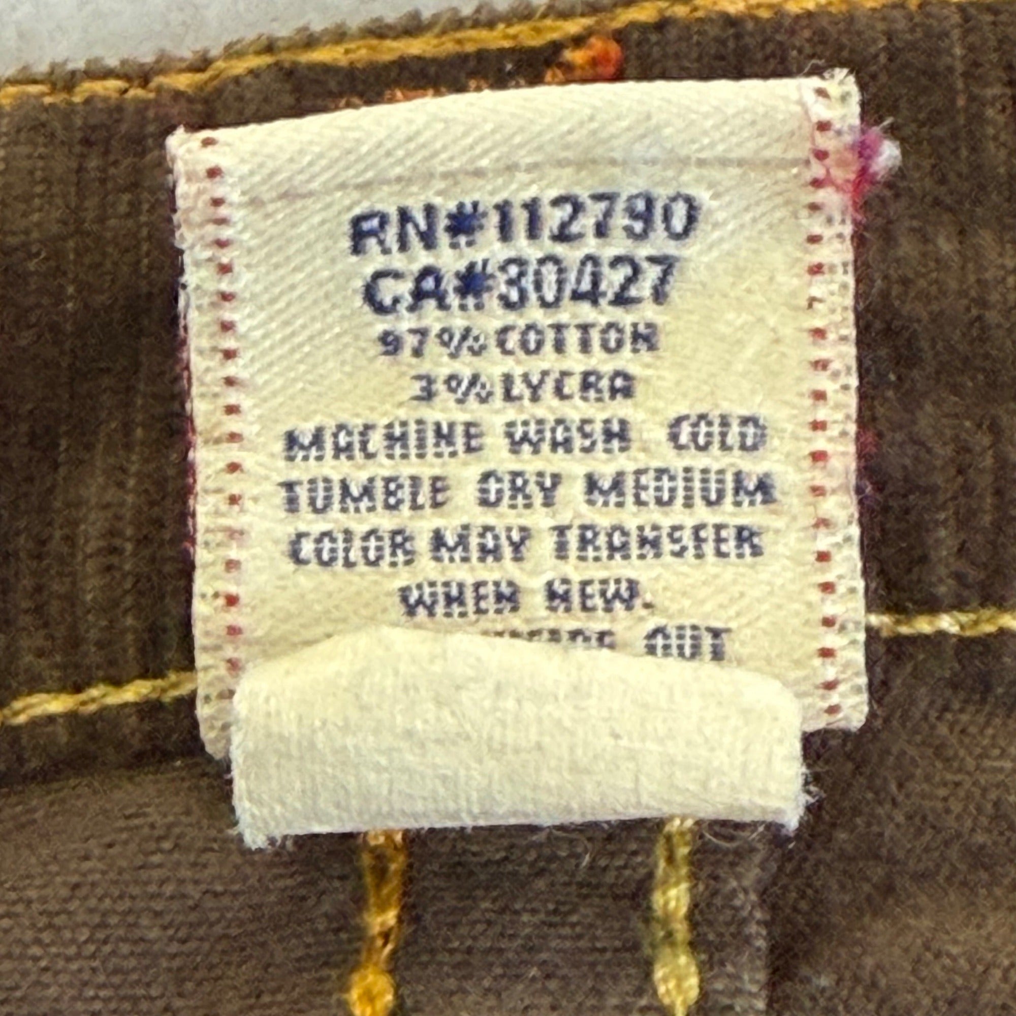True Religion Women’s Brown Corduroy Jeans Slim Fit Stylish Stitching Size 27