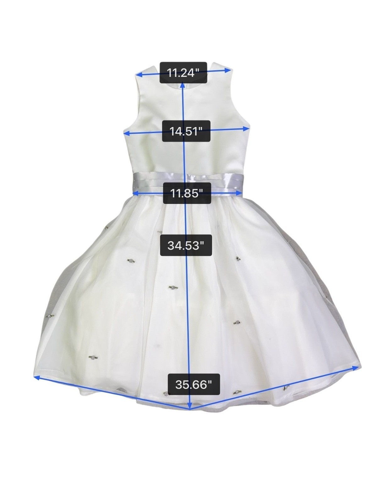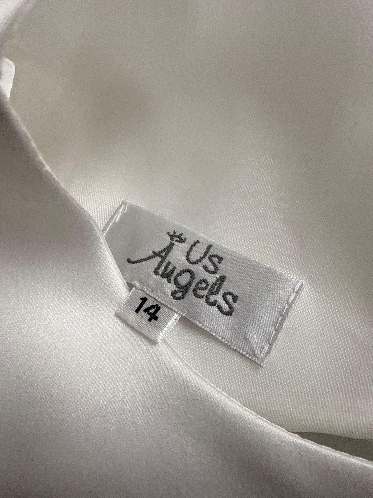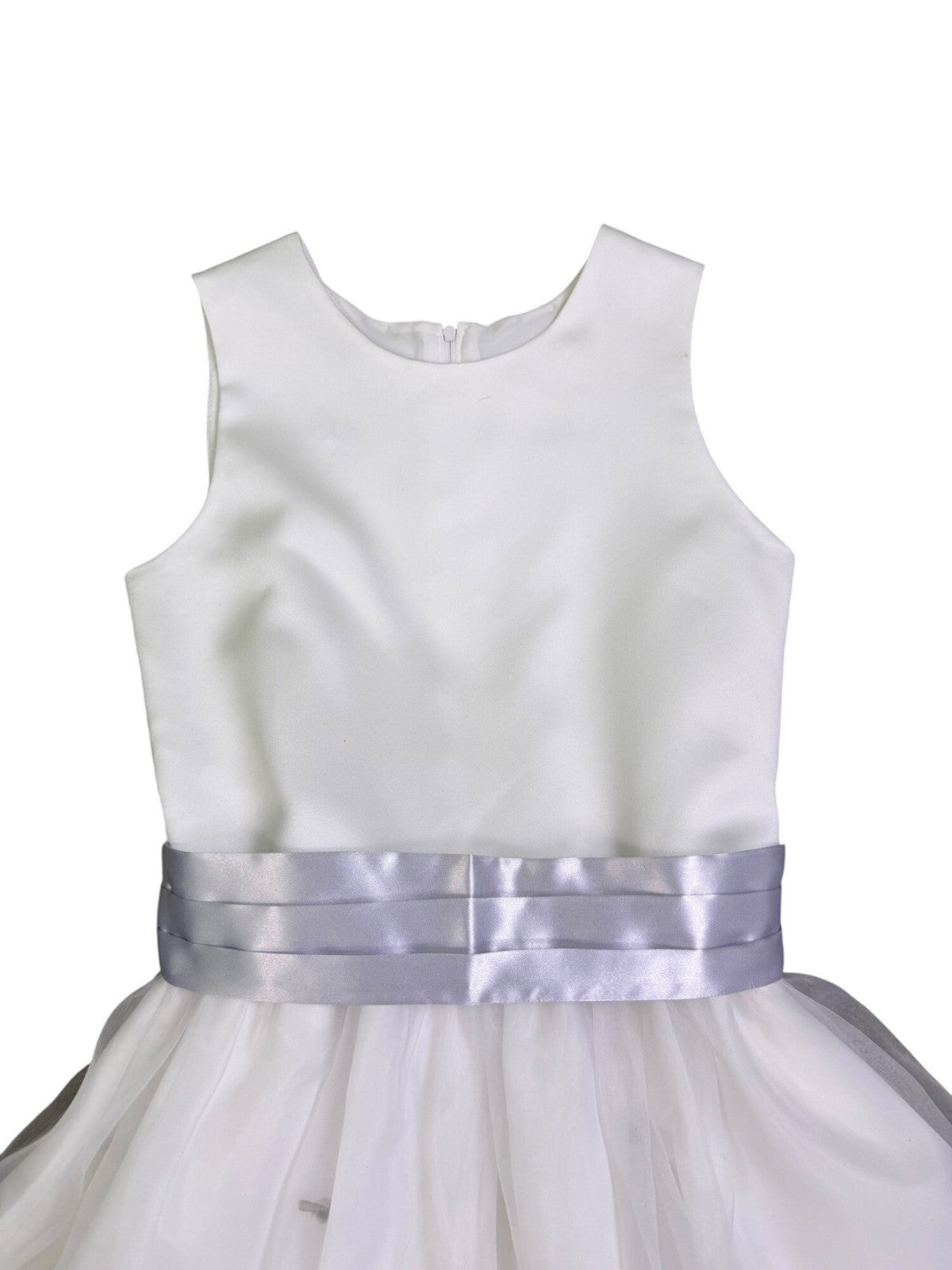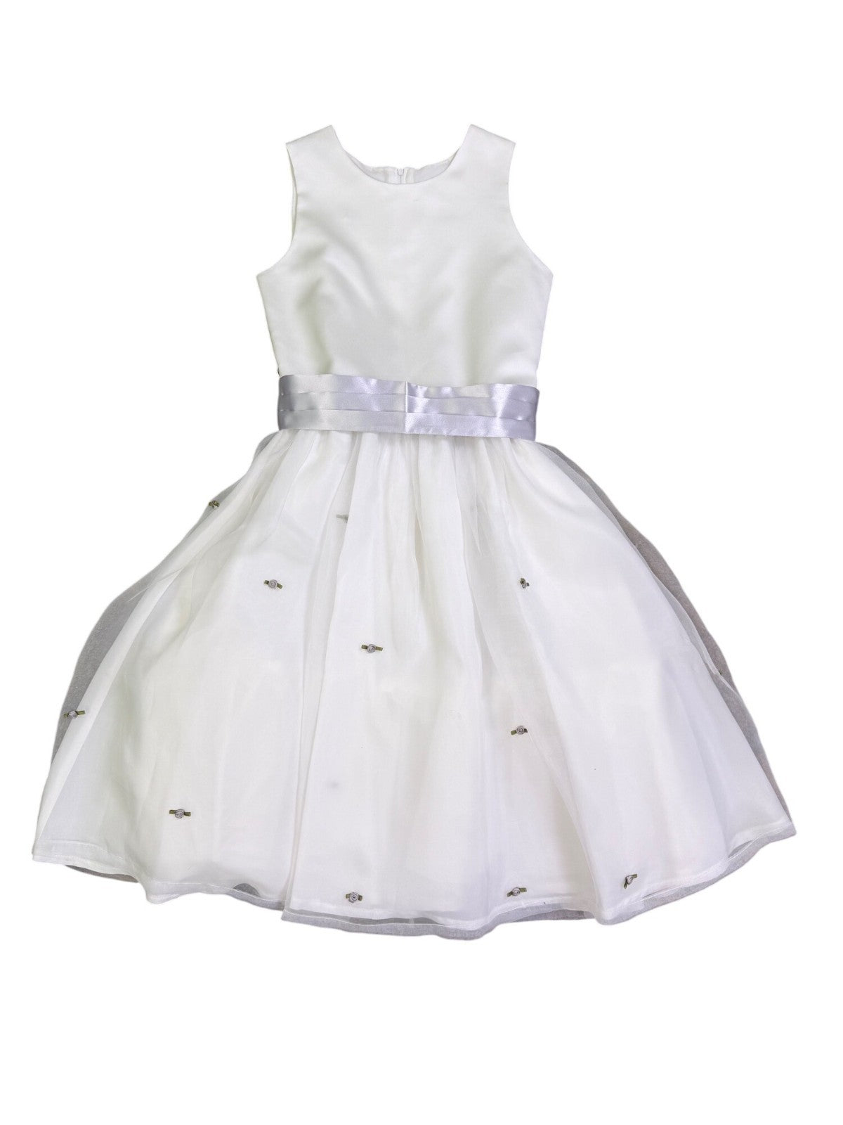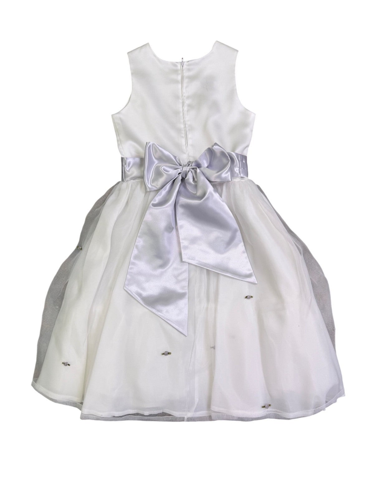 US Angels Girls White Satin Dress W Silver Embellished Tulle Skirt & Bow Size 14