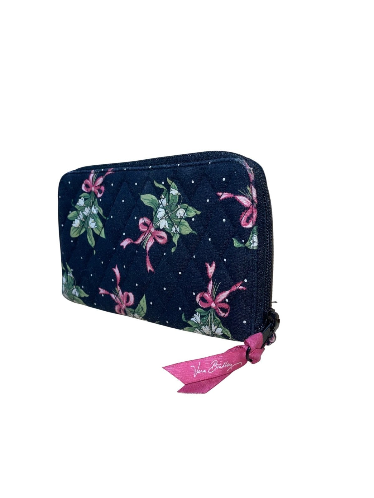 Vera Bradley Women’s Black Floral Quilted Wallet Zipper Closure & Card Slots