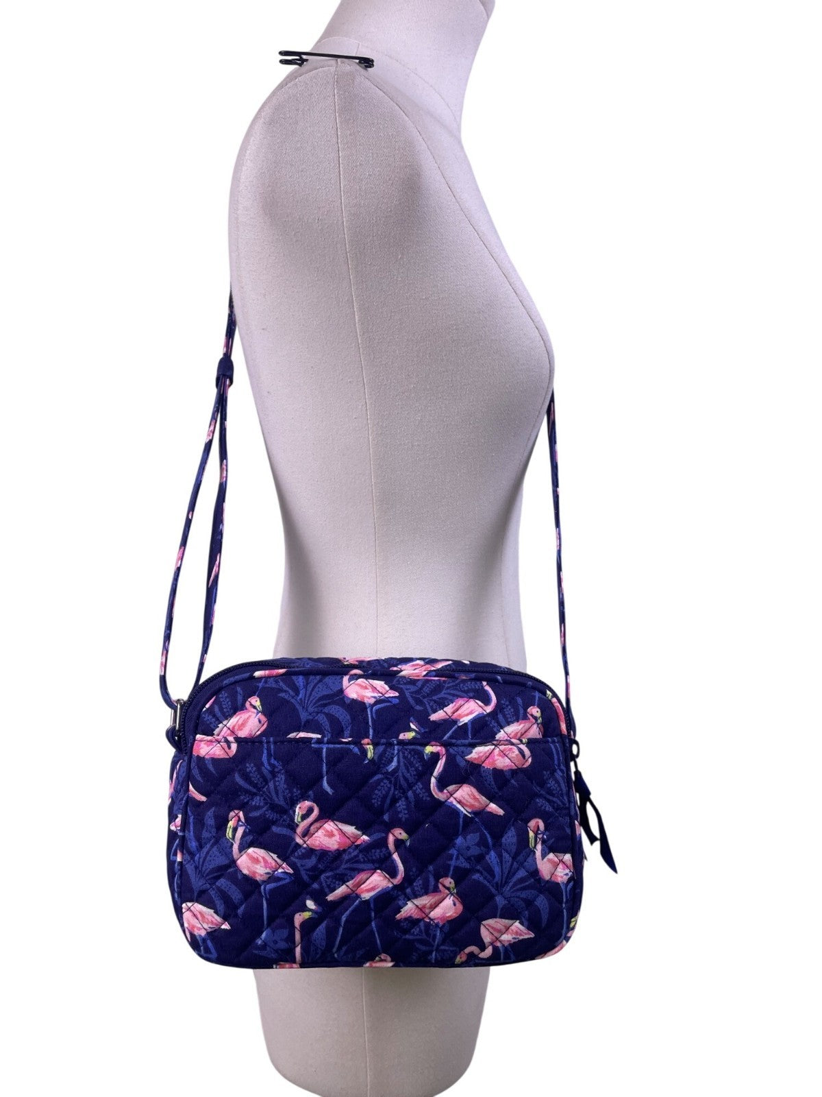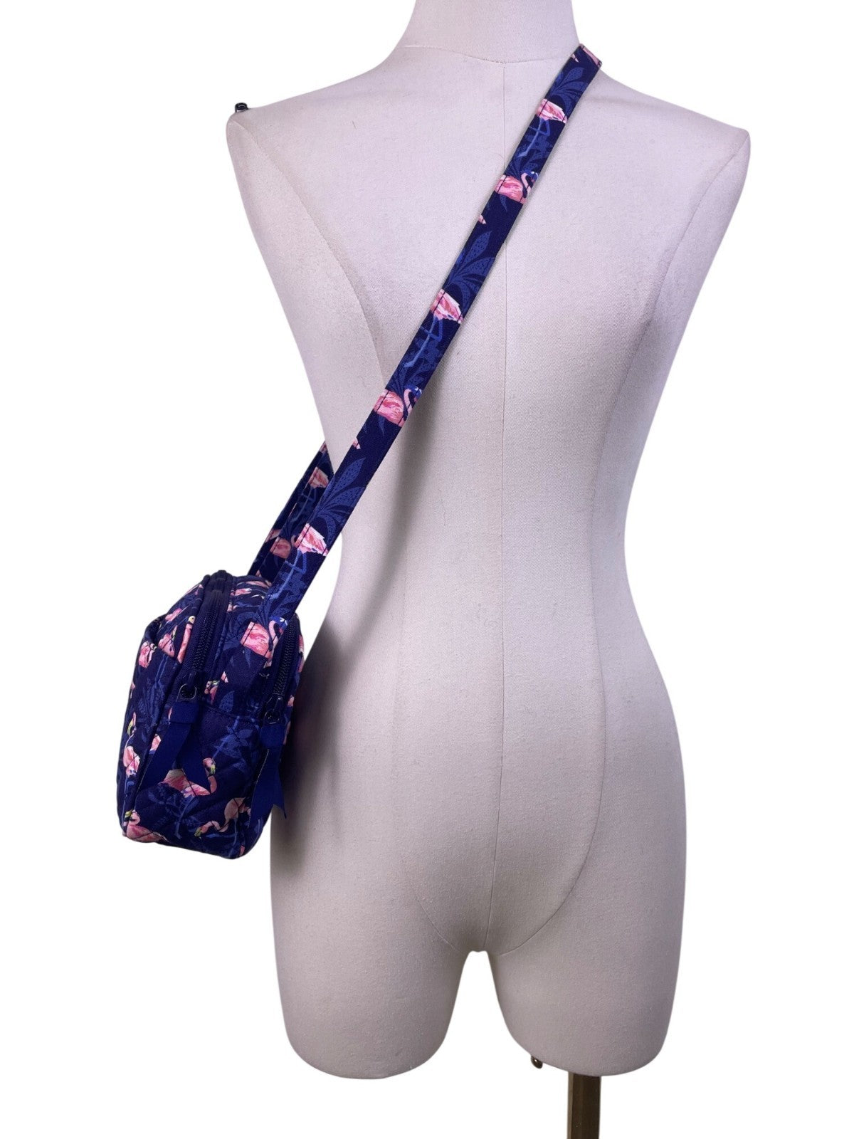 Vera Bradley Women’s Navy Flamingo Pattern Quilted Adjustable Crossbody Bag