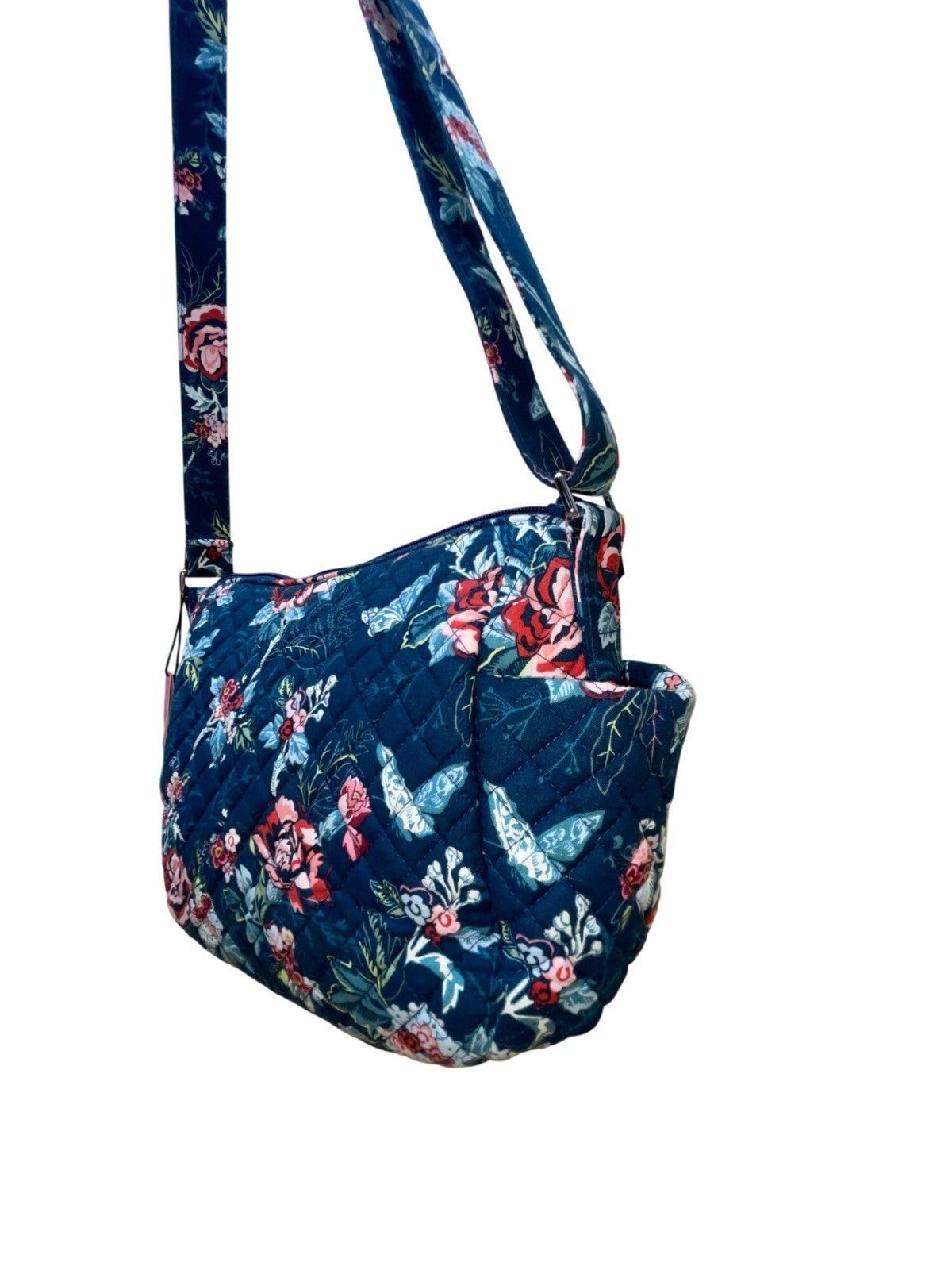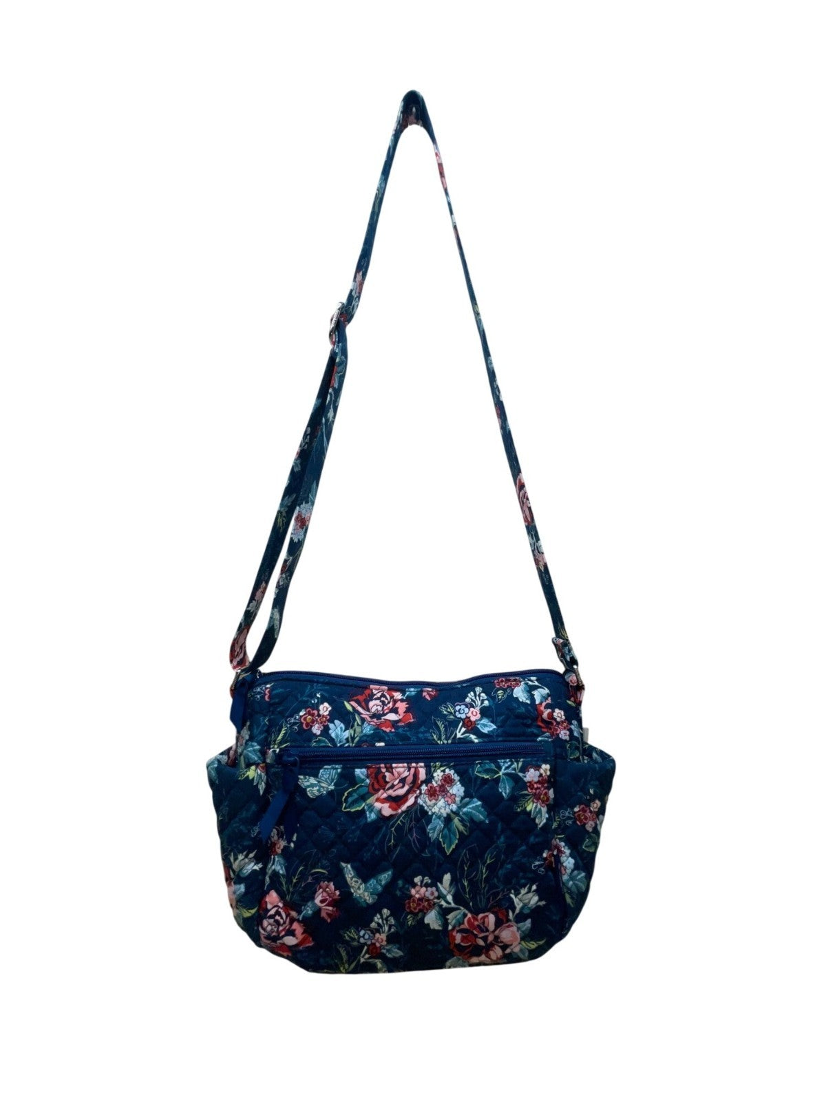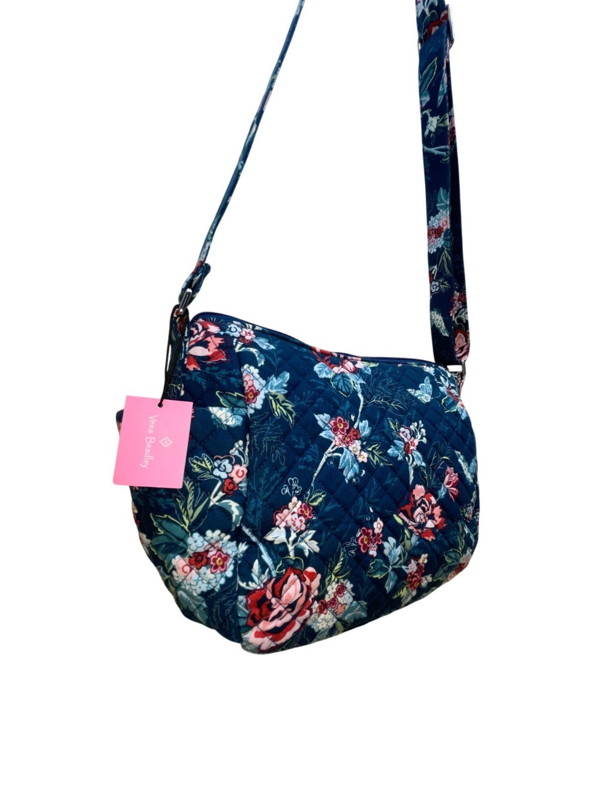 Vera Bradley Womens Navy Quilted Floral Adjustable Strap On-The-Go Crossbody Bag