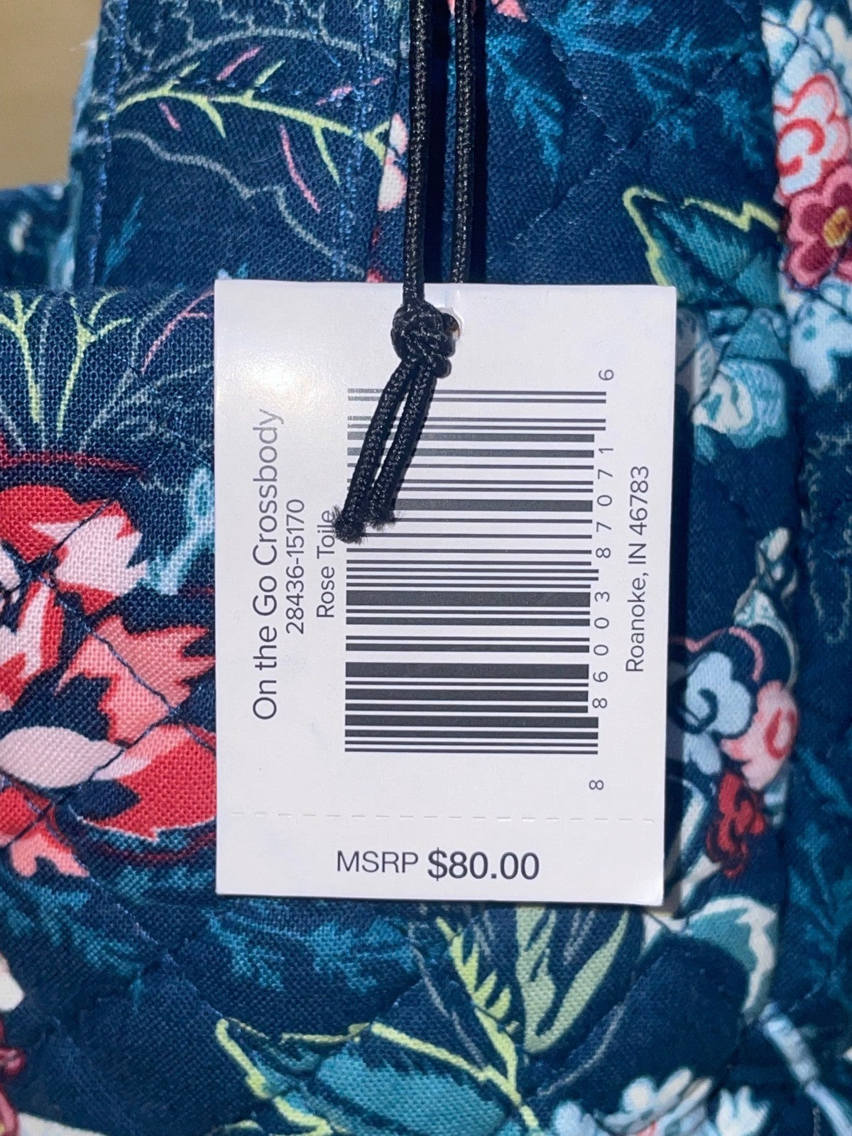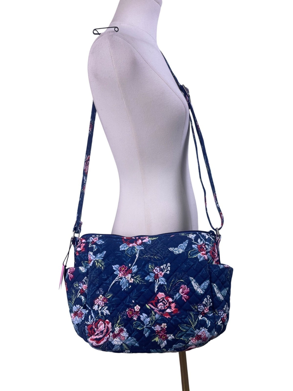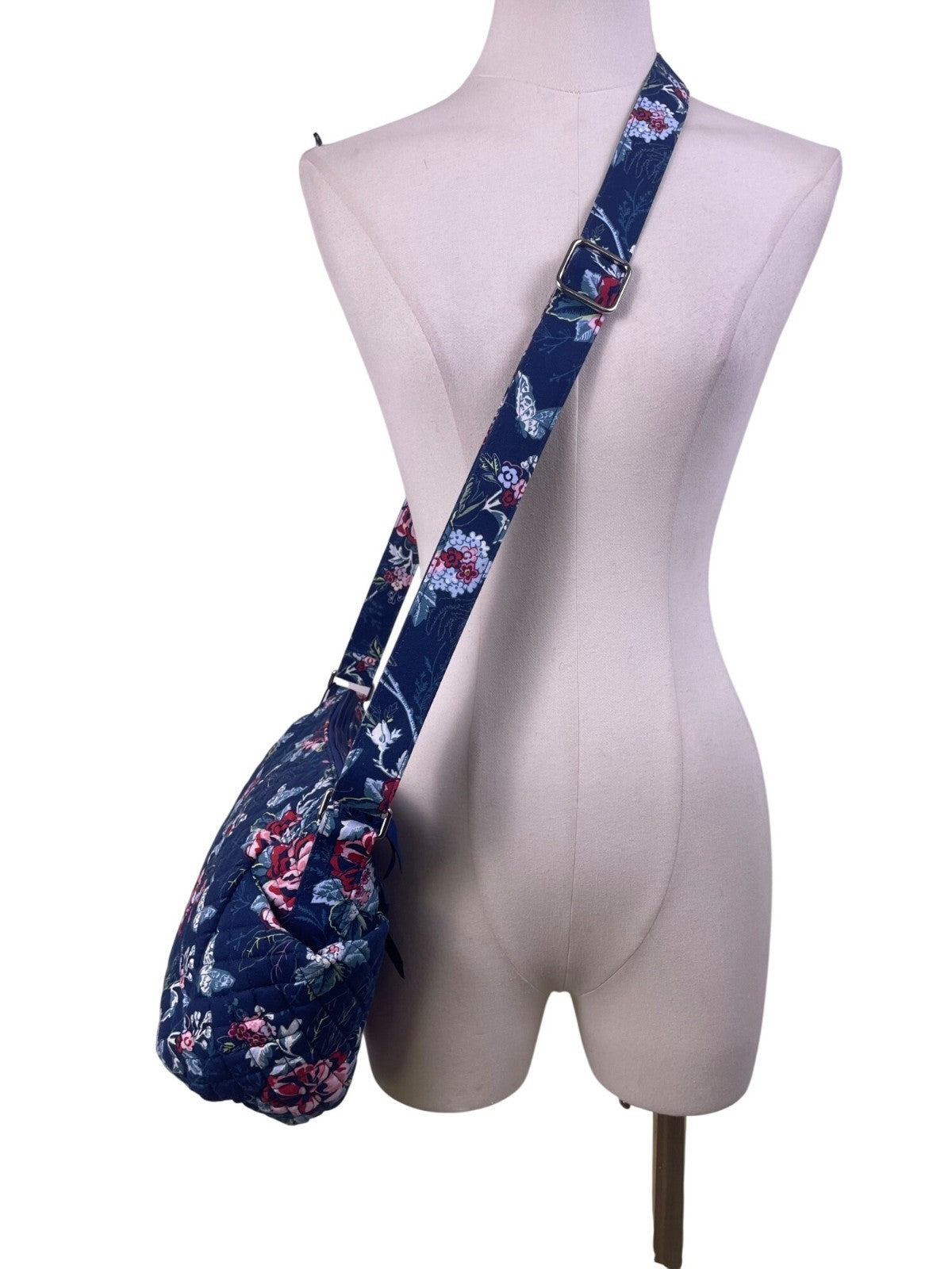 Vera Bradley Womens Navy Quilted Floral Adjustable Strap On-The-Go Crossbody Bag