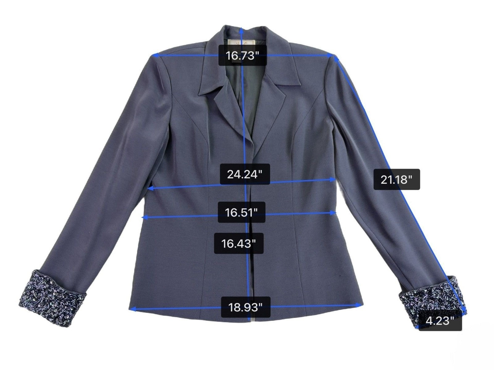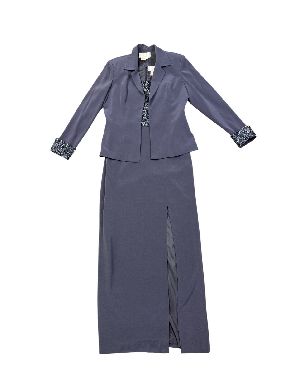 Vie By Victoria Royal Womens Gray Sequin Top & Blazer Formal Dress Set Sz 8