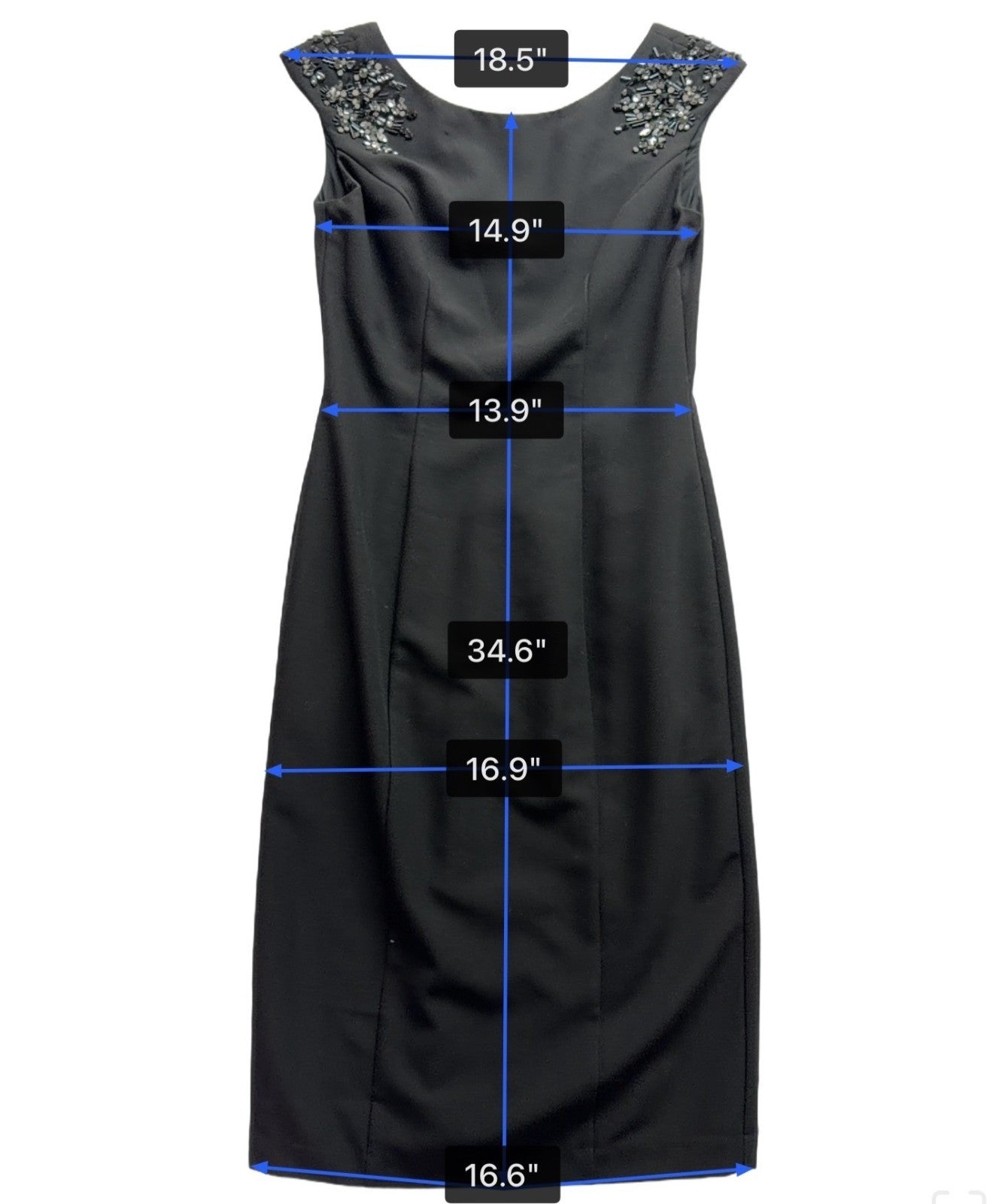 Vince Camuto Women's Black Sleeveless Dress Jeweled Shoulders Back Zipper Size 4