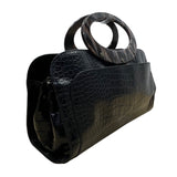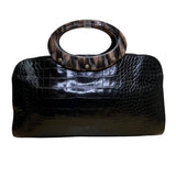 Elegant croc-embossed handbag with sturdy resin oval handles and a spacious interior. Perfect as a sophisticated carry-all for versatile use.
