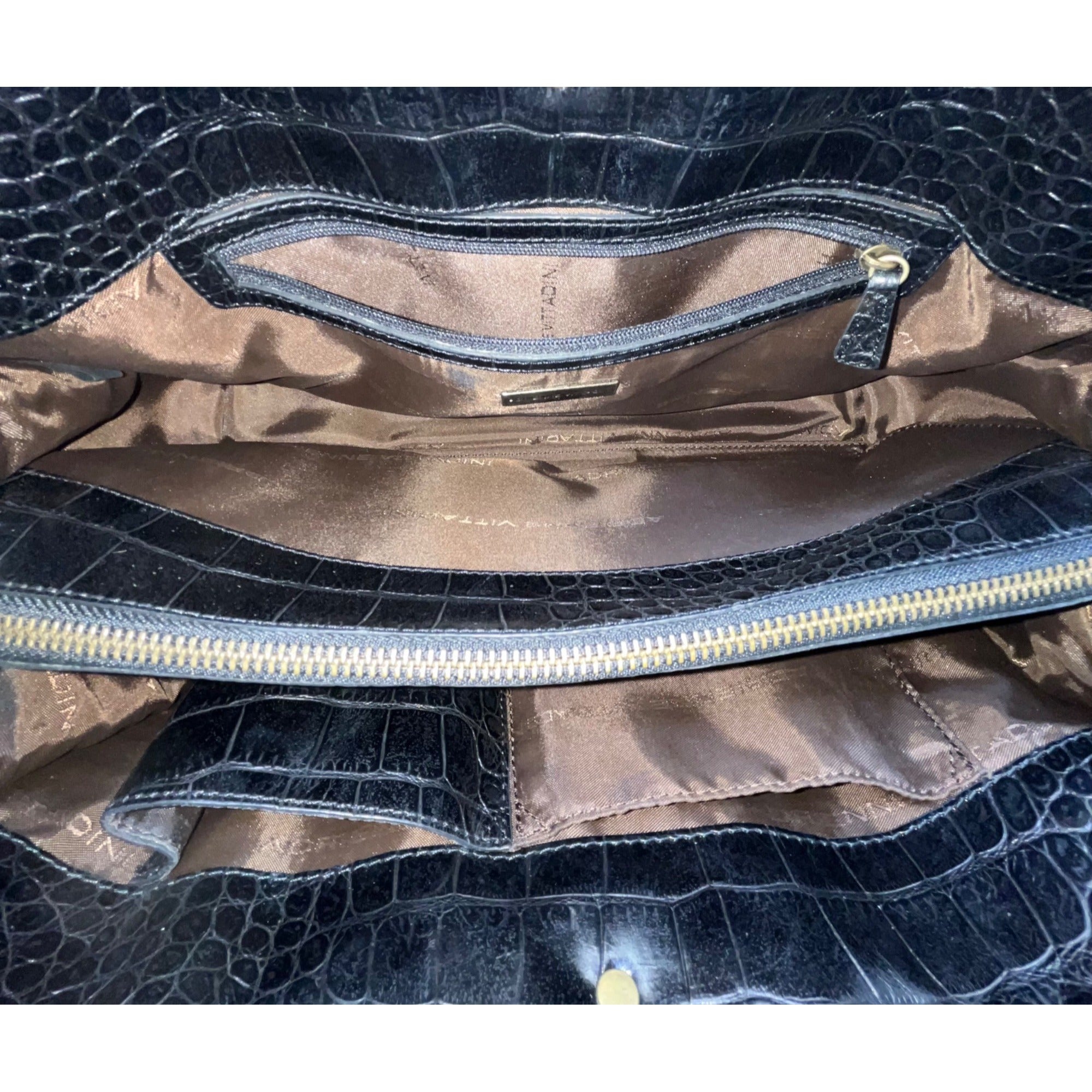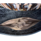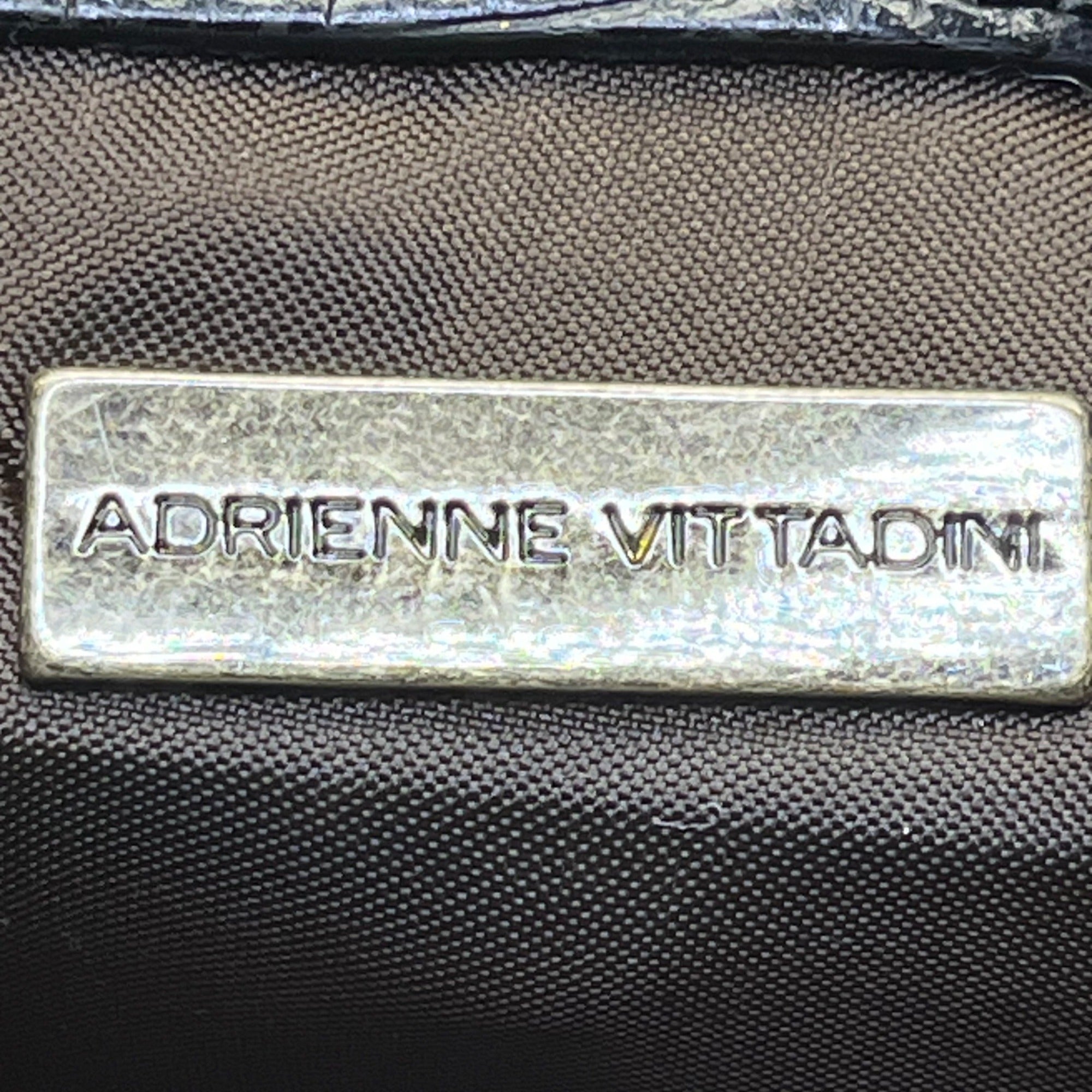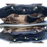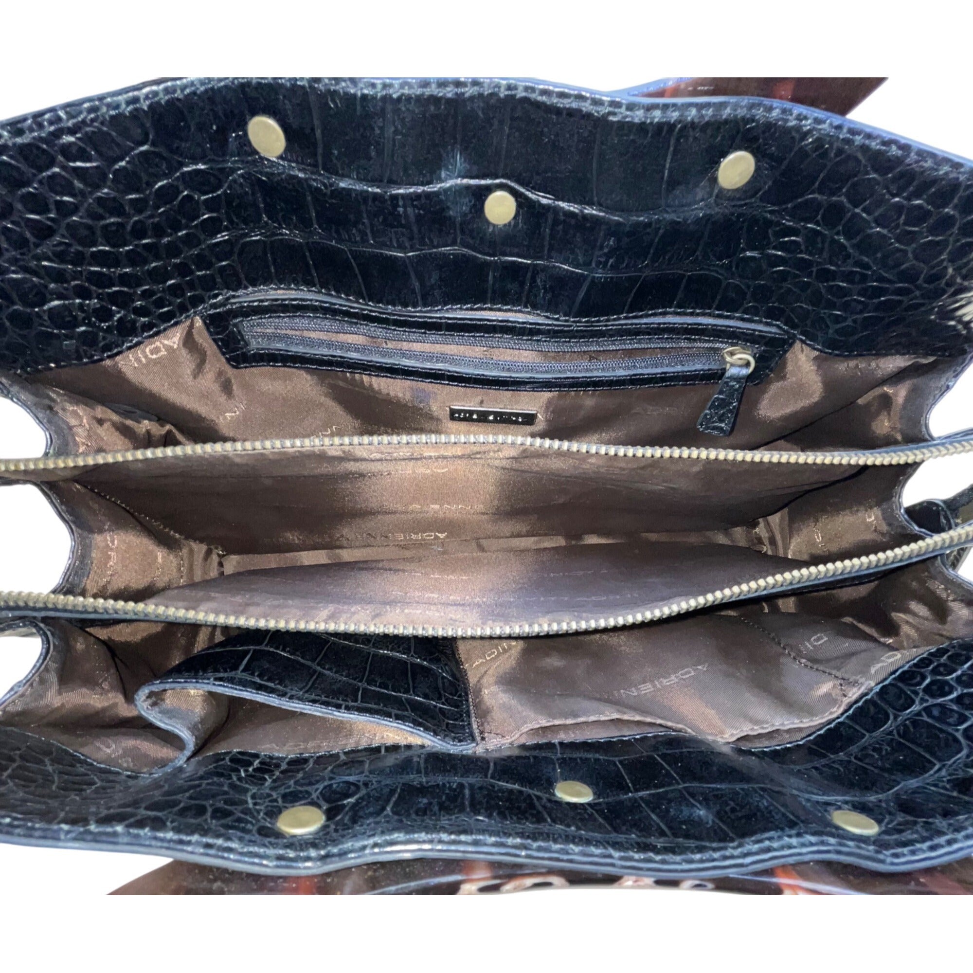 Adrienne Vittadini Women’s Black Leather Croc Embossed Tortoiseshell Top Handle Tote