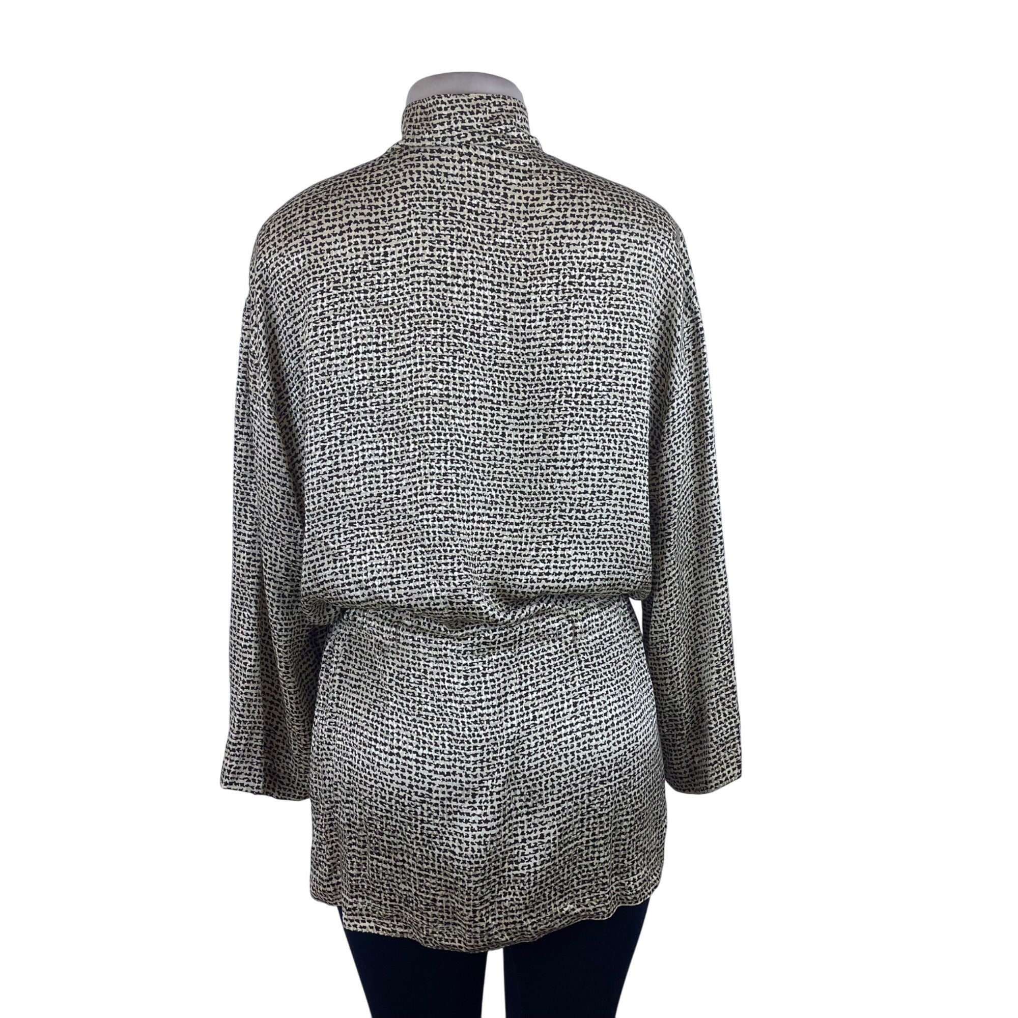 This Anne Klein ll women's tunic is crafted with a lightweight material, featuring a stylish high collar, long sleeves, and a coordinating waist belt for a flattering fit. This modern and versatile design offers a relaxed, perfect for everyday wear or layering options. Free of flaws or defects, it combines comfort and elegance seamlessly.