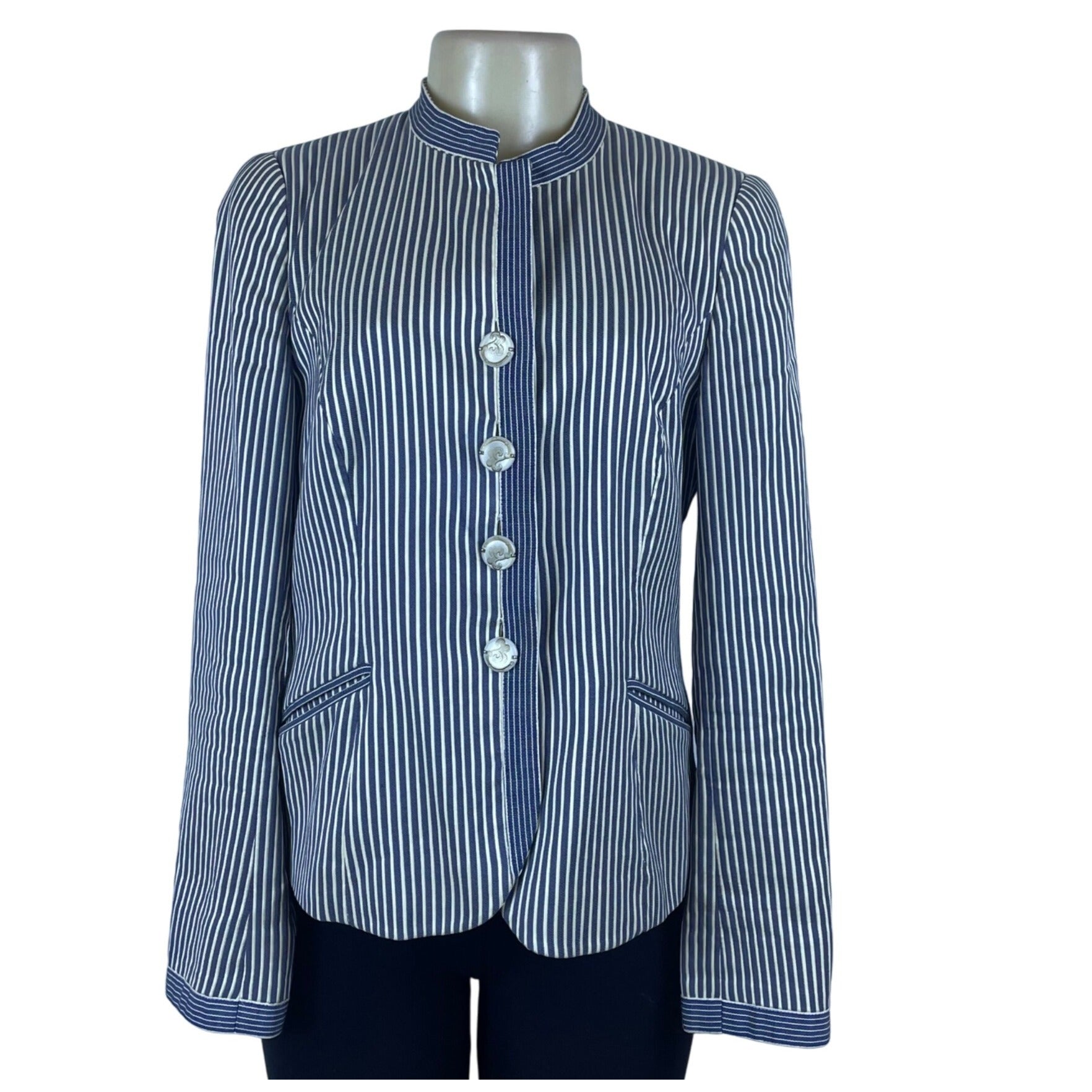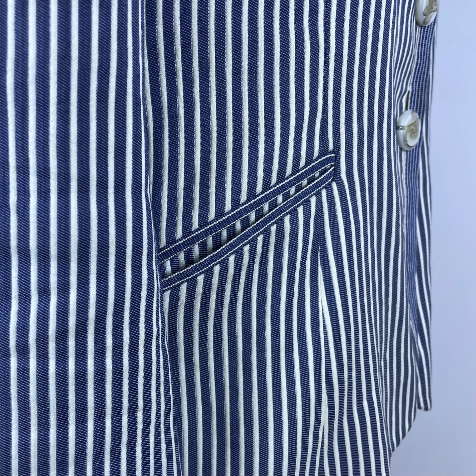 Armani Womens Blue & White Striped Cotton/Acetate Blazer Size 8 Slim Fit Stylish