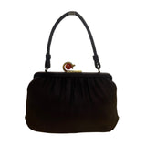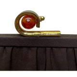 Bags By Edwards Women’s Brown Satin Top Handle Red Stone Clasp Vintage Purse