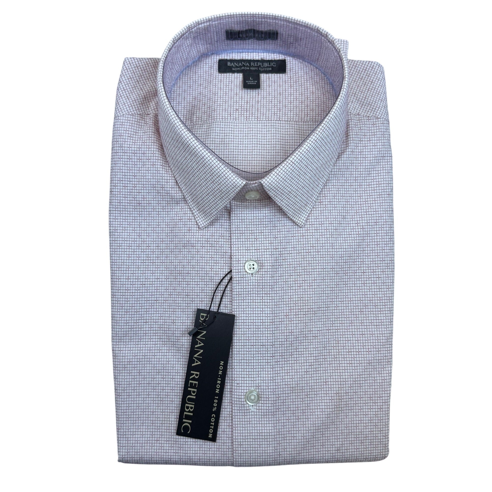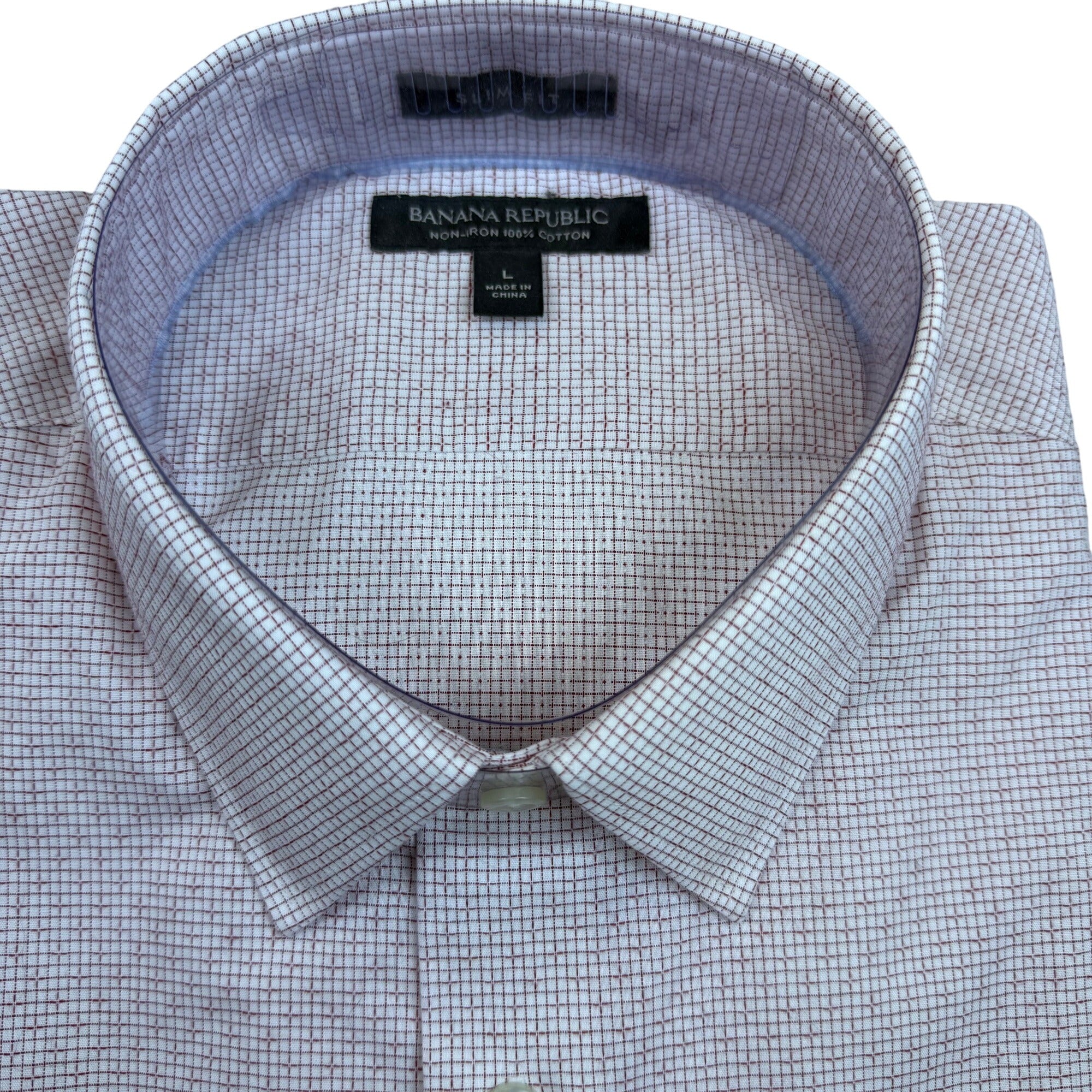 Banana Republic Mens Red Grid Pattern Shirt Non-Iron Button-Up Size L - New