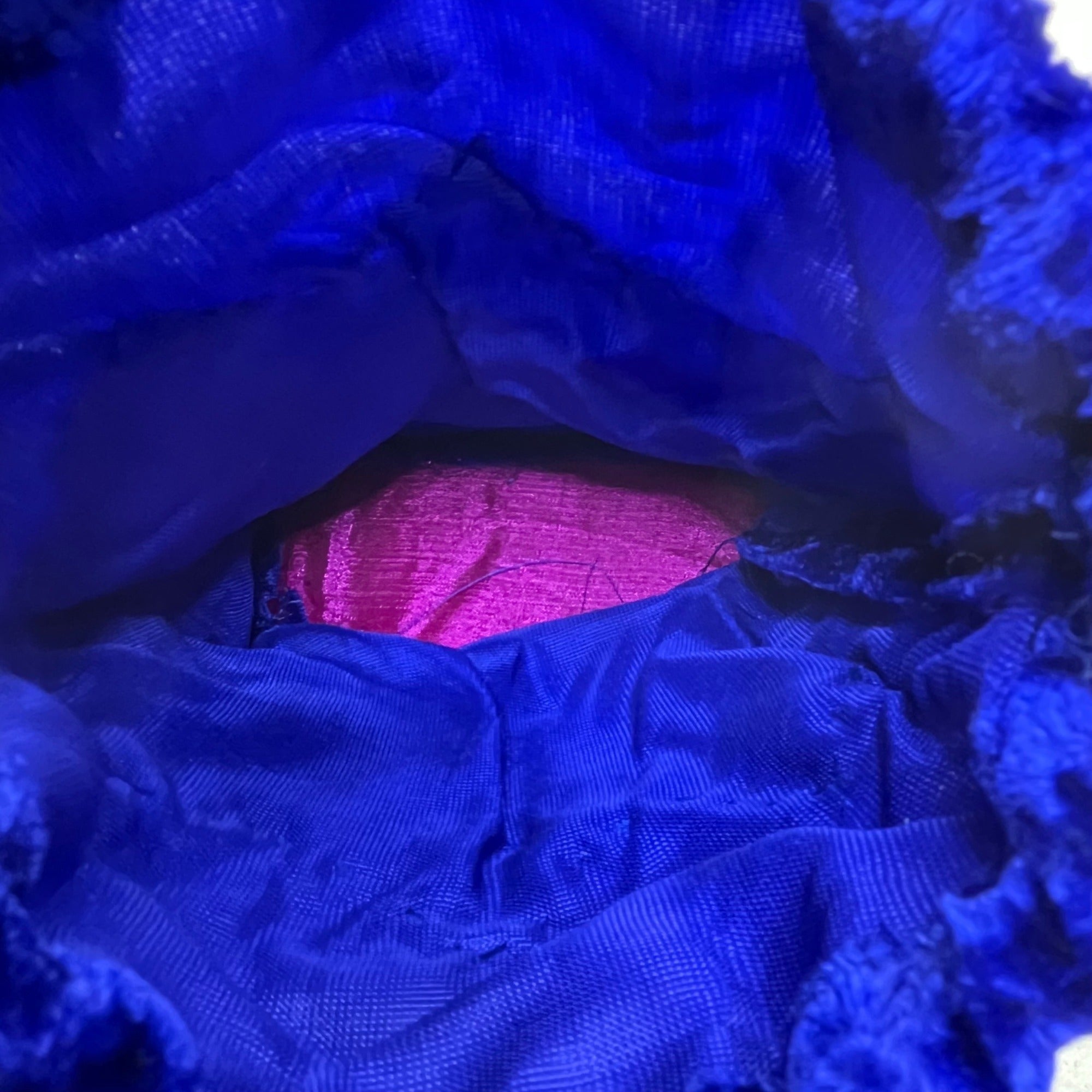 Beaded Velvet Drawstring Pouch Navy Ethnic Geometric Design Embellished Handbag
