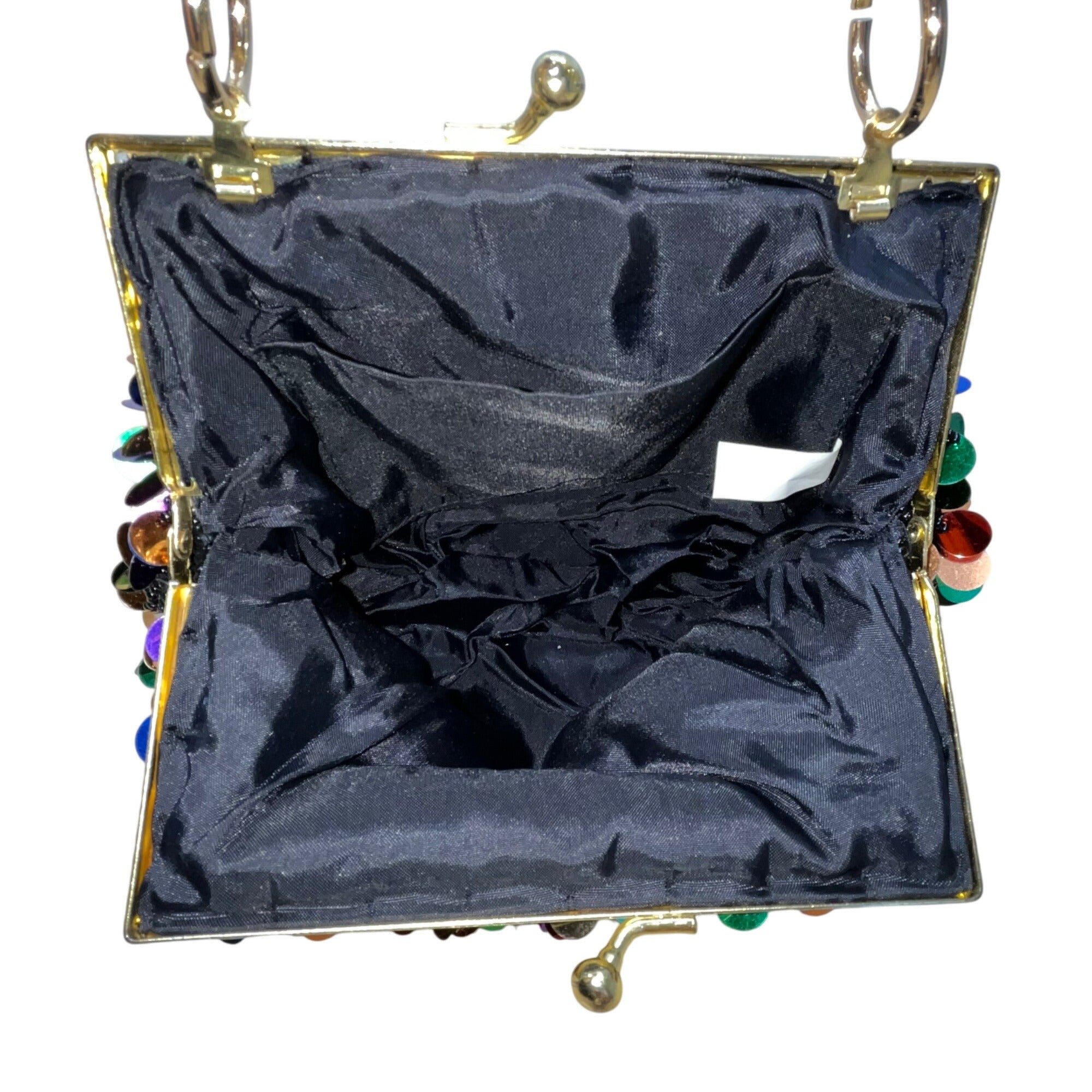 Black Sequin Chain Handle Purse Party Evening Bag With Gold-Tone Accents Small