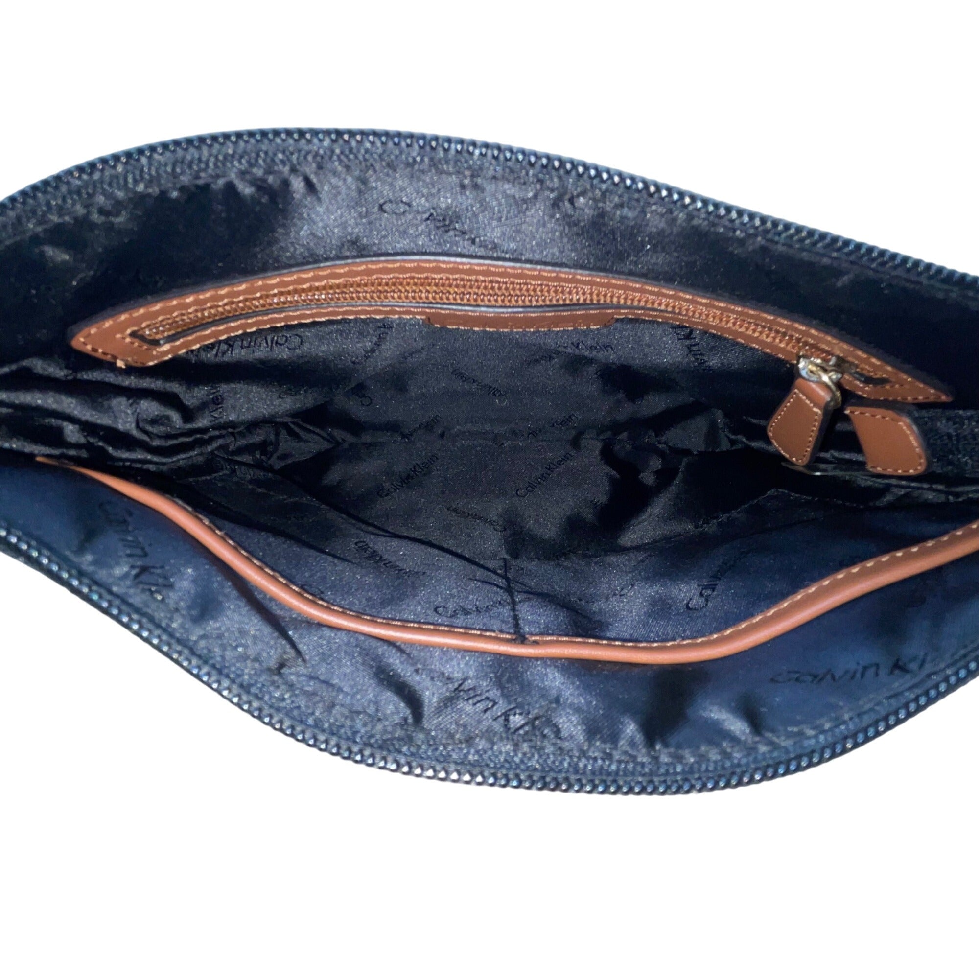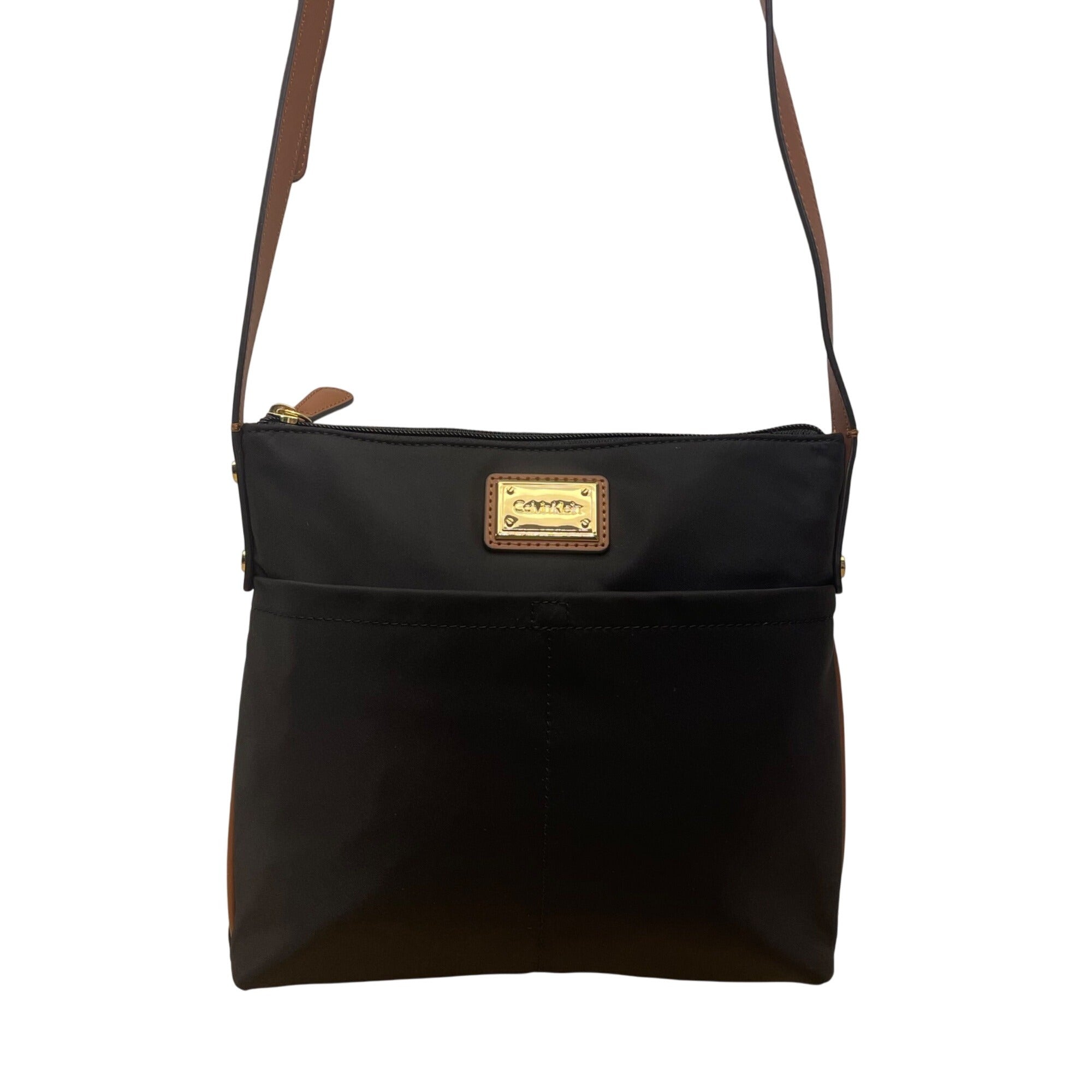 Calvin Klein Women’s Black Nylon Gold Logo Plate Adjustable Strap Crossbody Bag