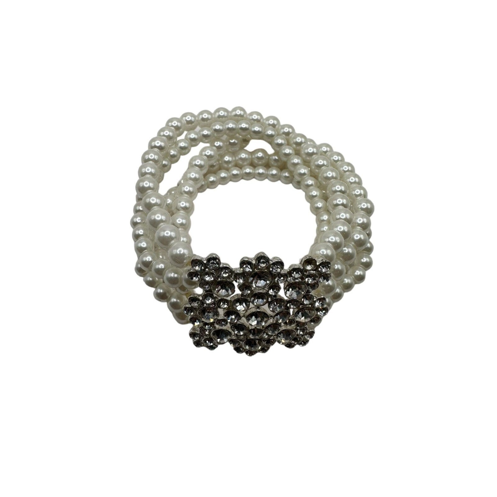 Faux Pearl Stretch Bracelet Rhinestone Spacers Multi-strand Statement Bracelet