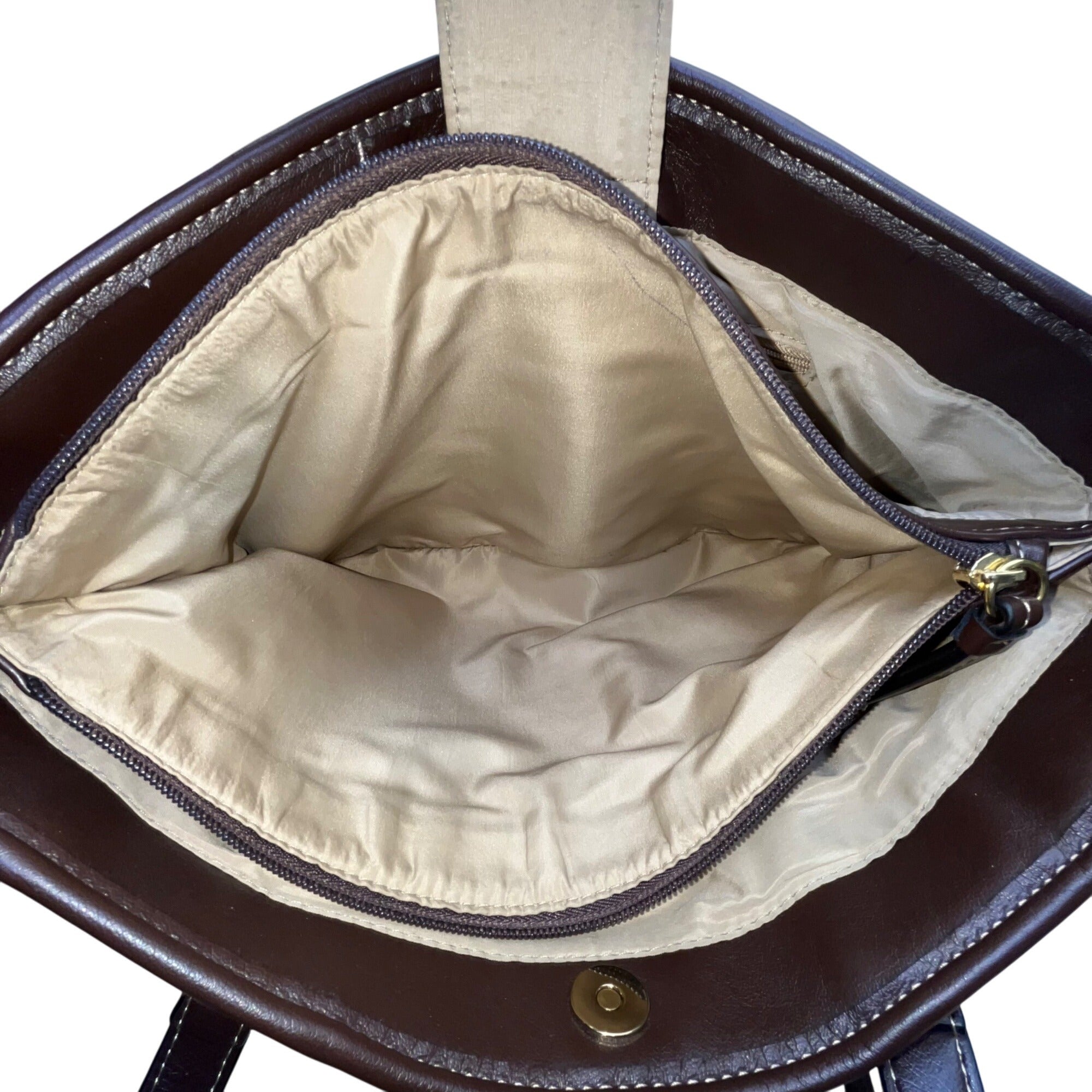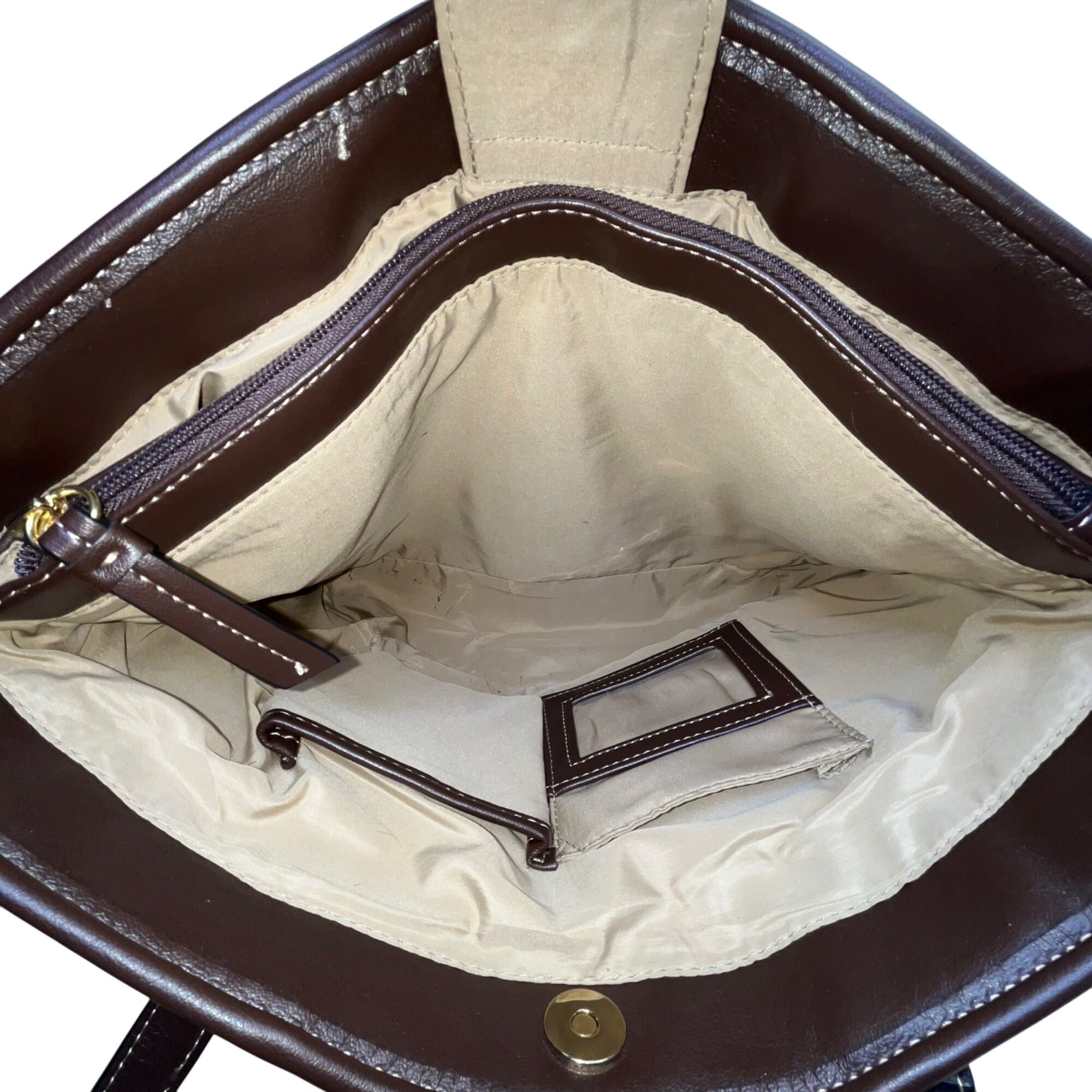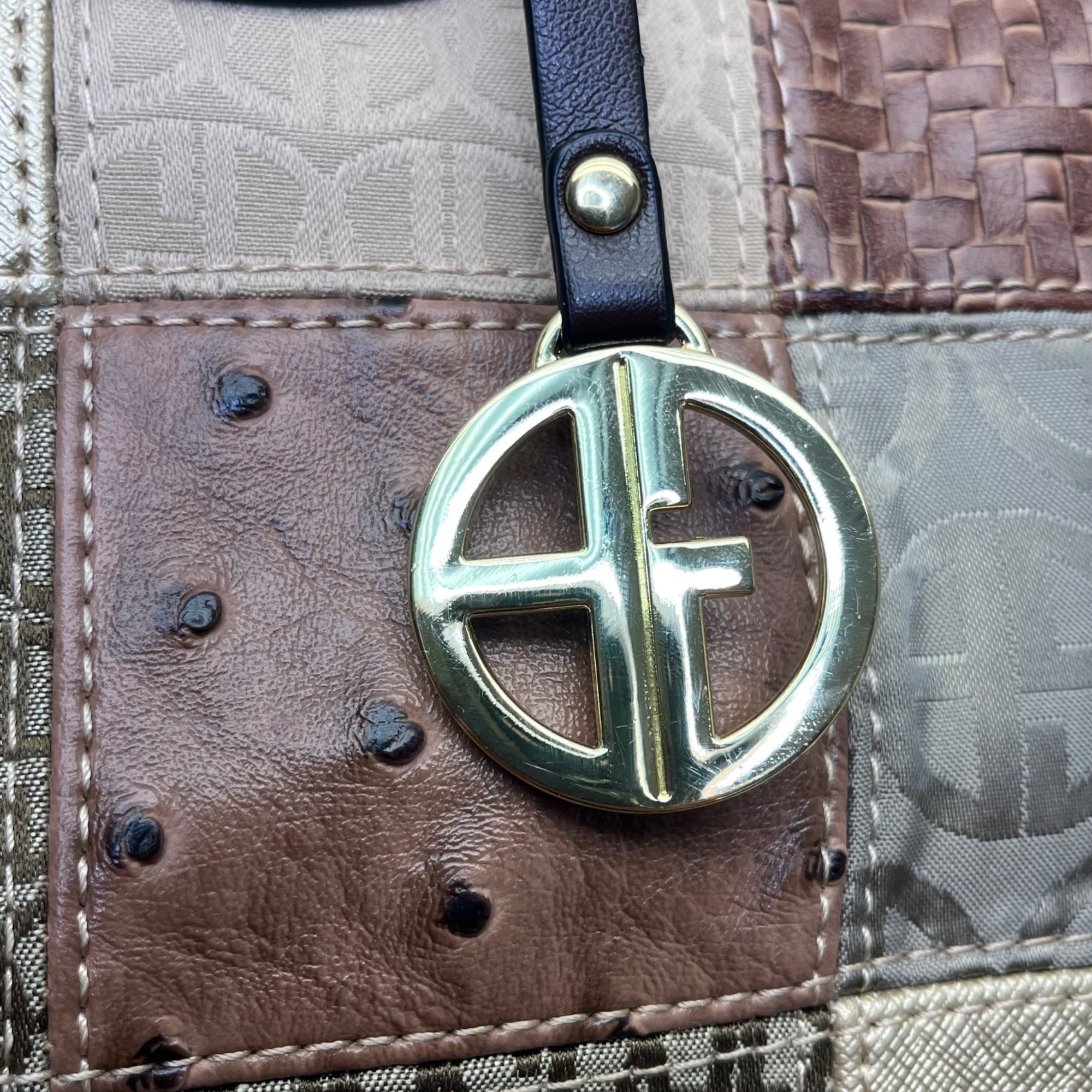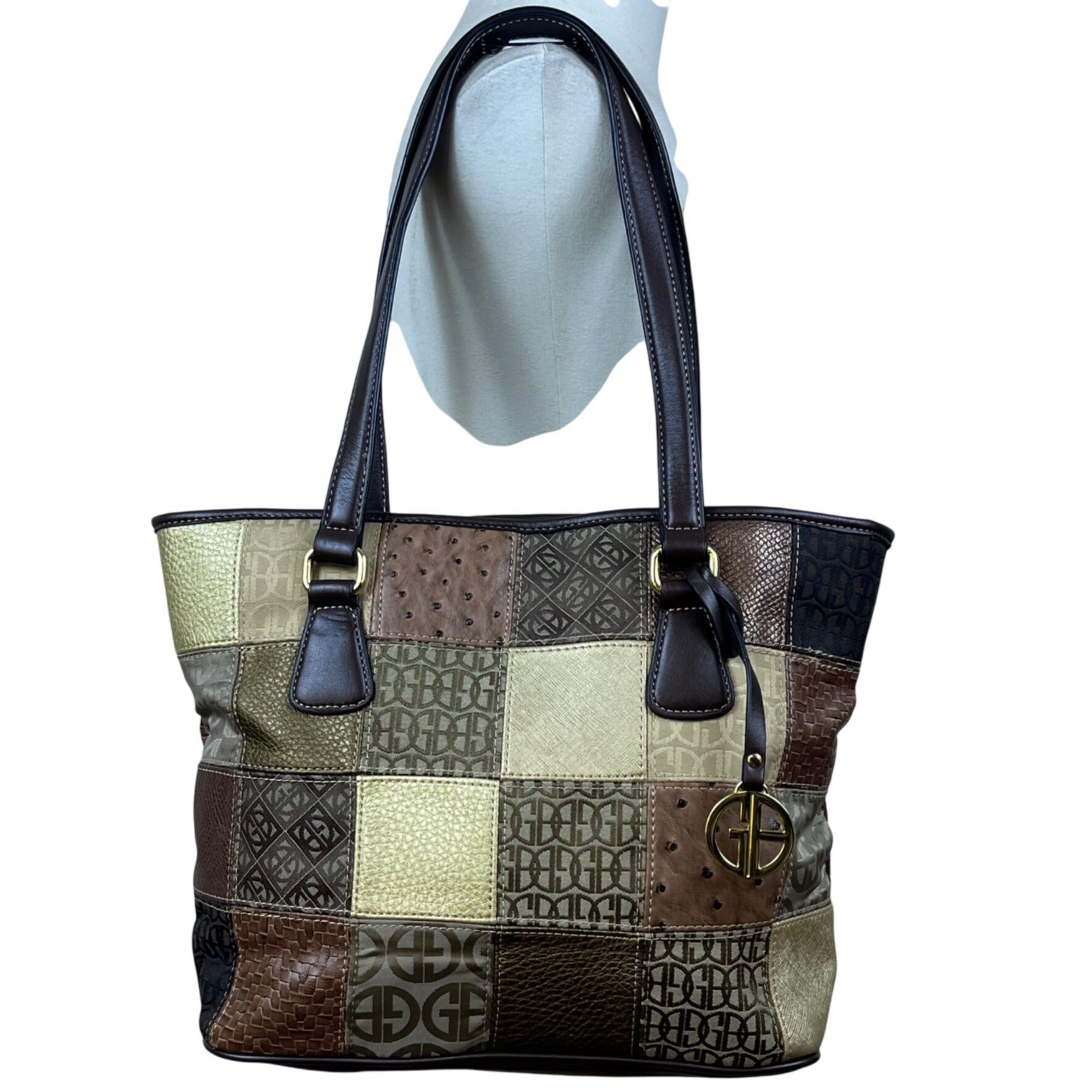 Giani Bernini Womens Brown Multi-Material Patchwork Double Straps Tote Bag