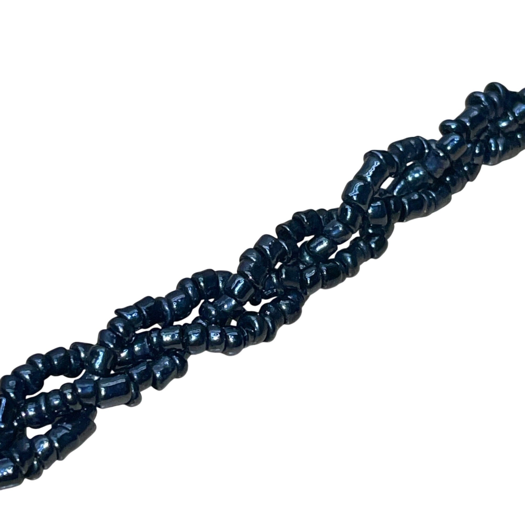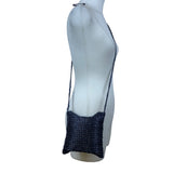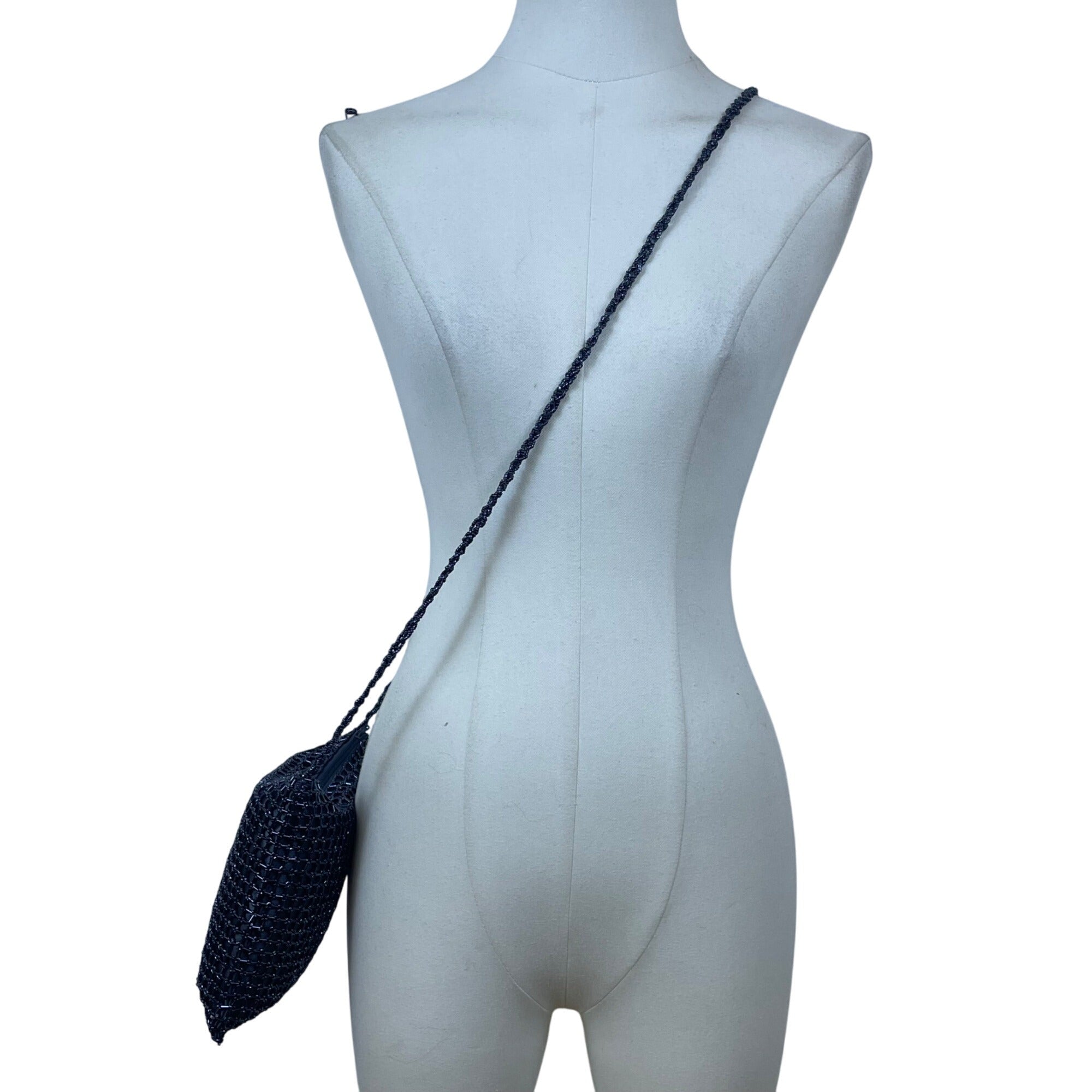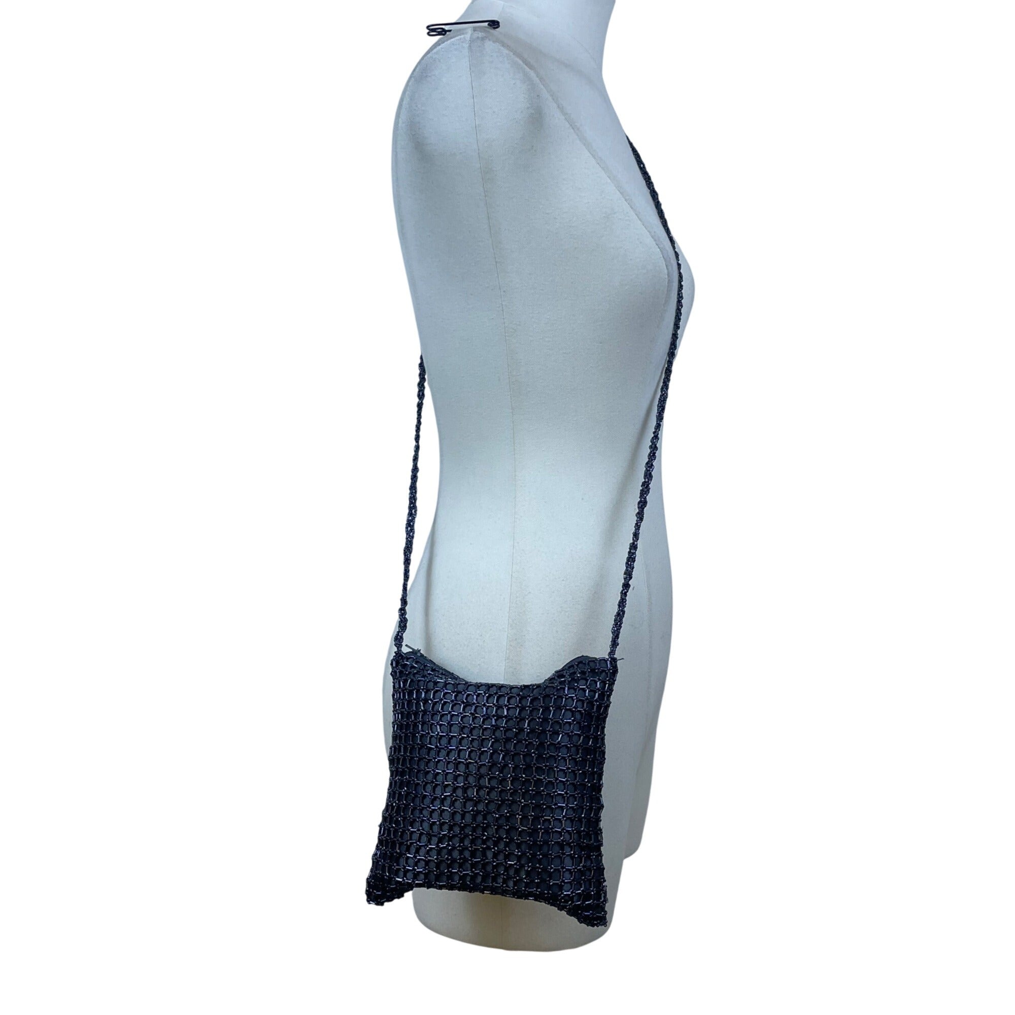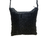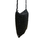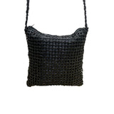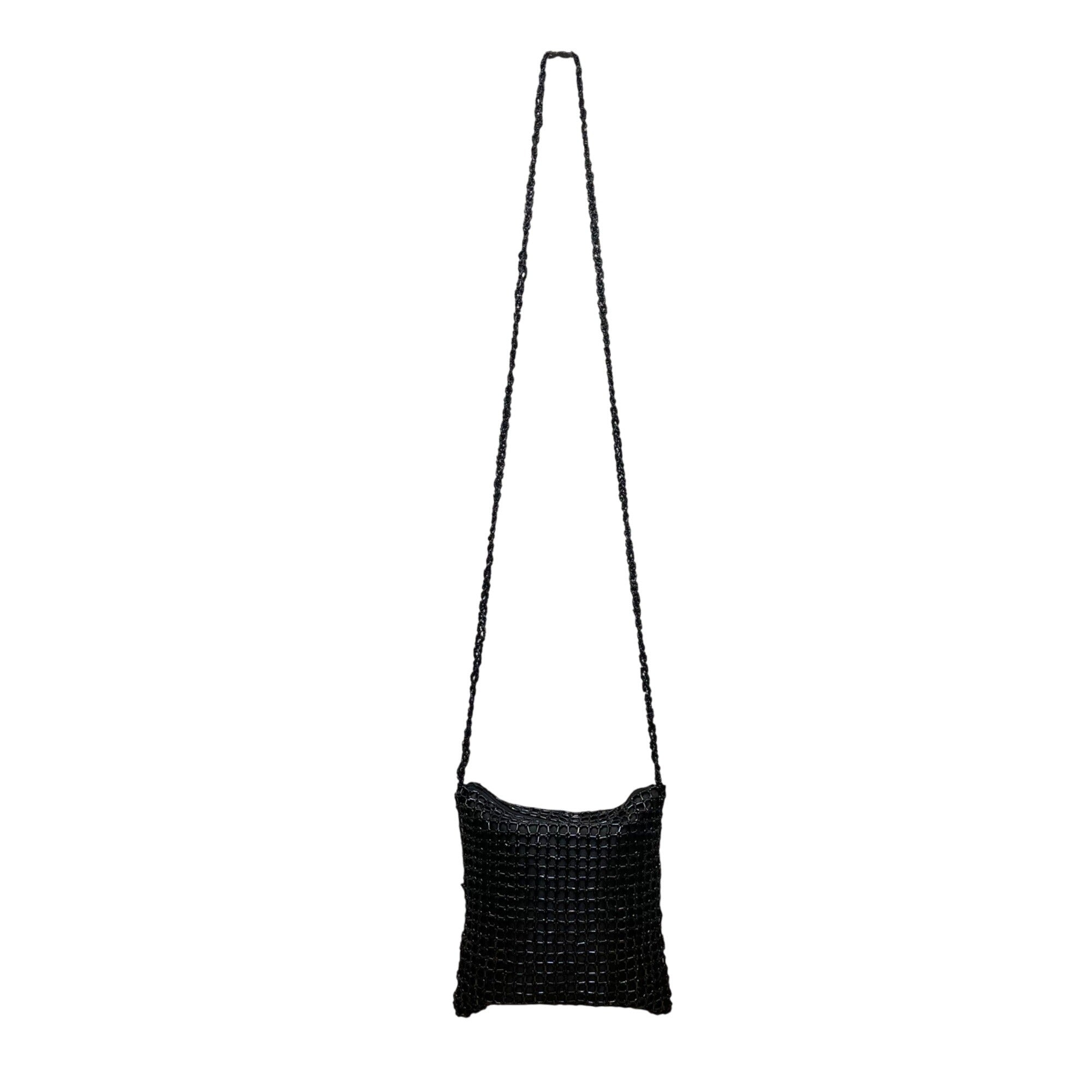 Handmade Women’s Black Beaded Squared Woven Pattern Long Strap Crossbody Bag