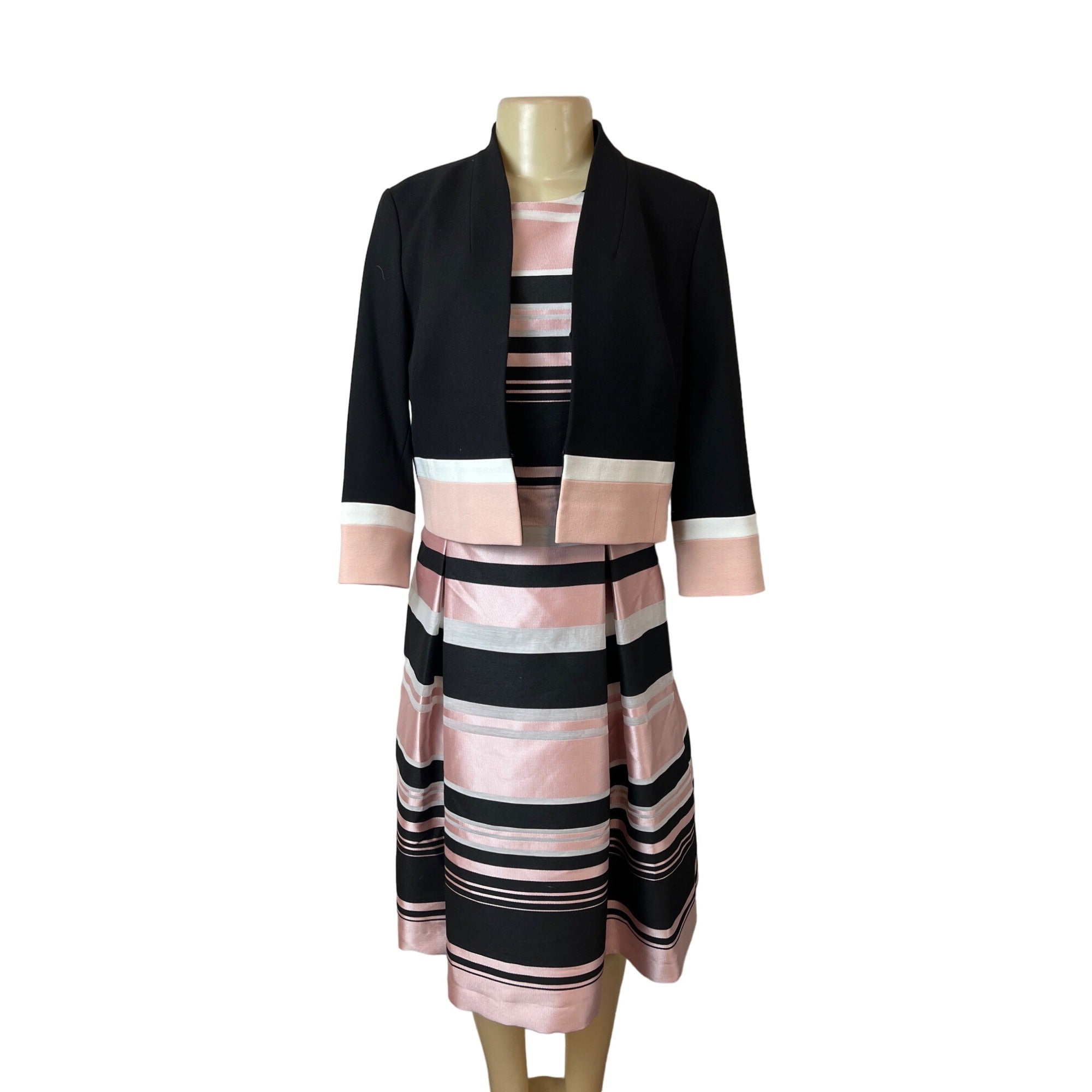 Hobbs London Womens Black Pink A-Line Striped Dress With Cropped Jacket Sz 8 New