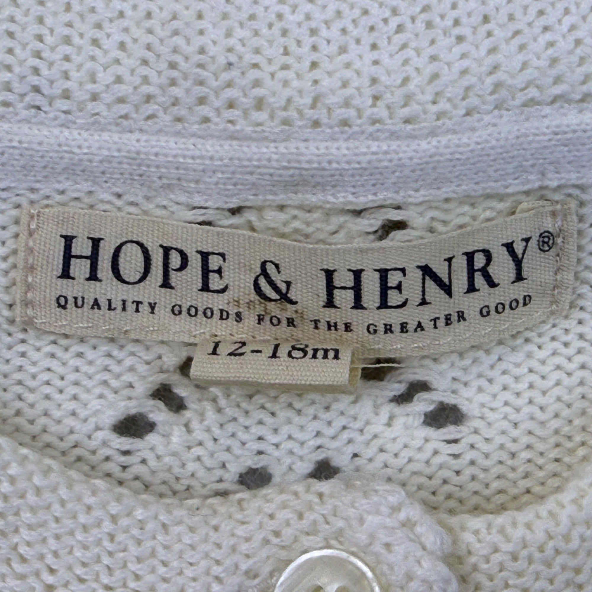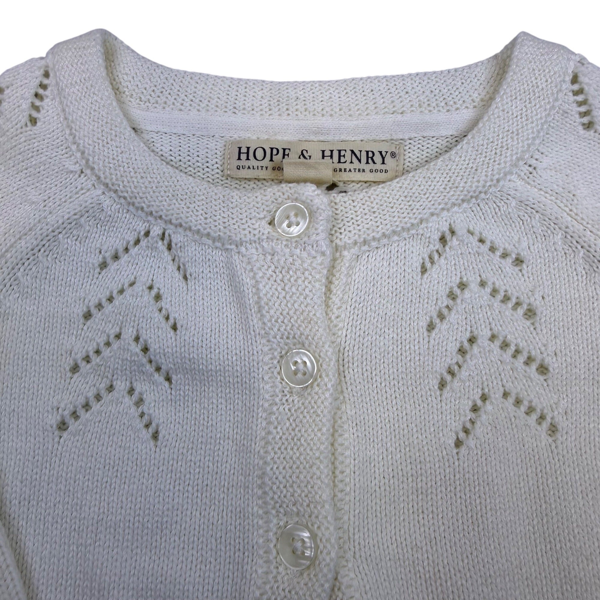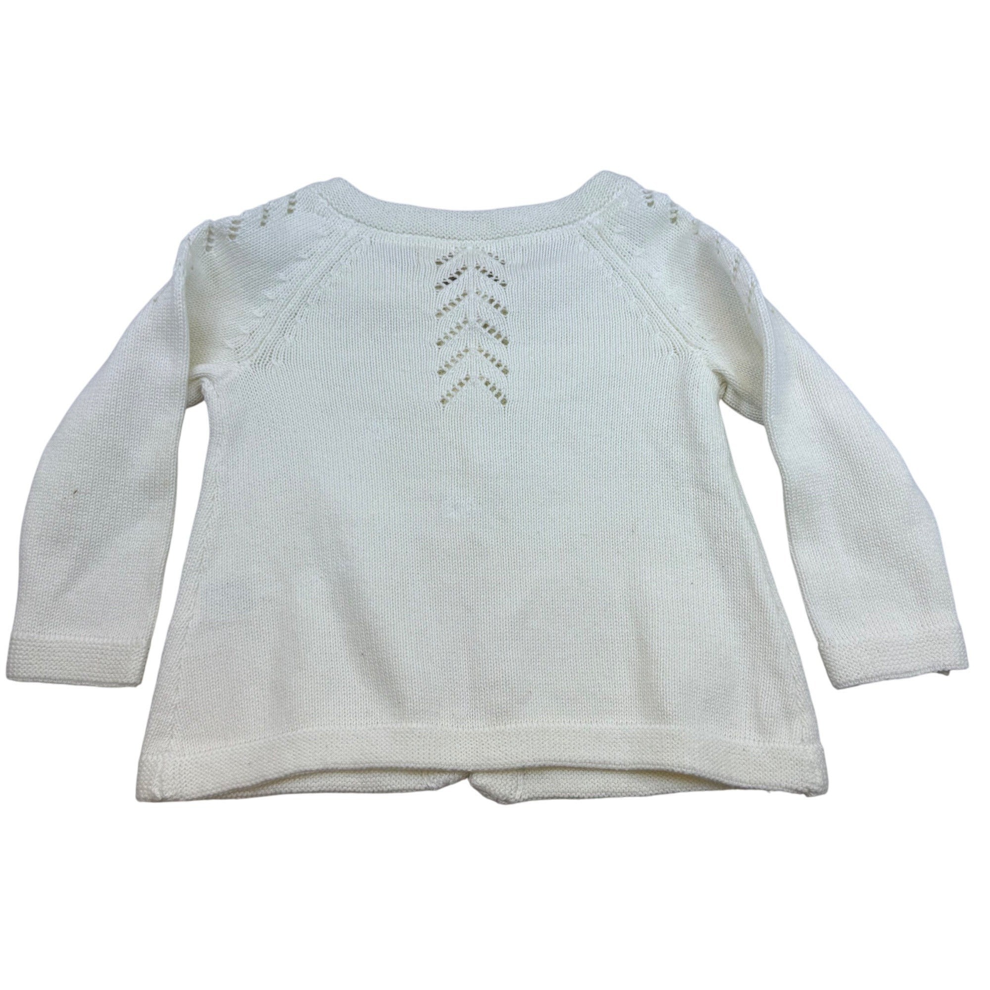 Hope & Henry Girls White Cotton Sweater Knit Cardigan Chevron Pattern Sz 12-18M