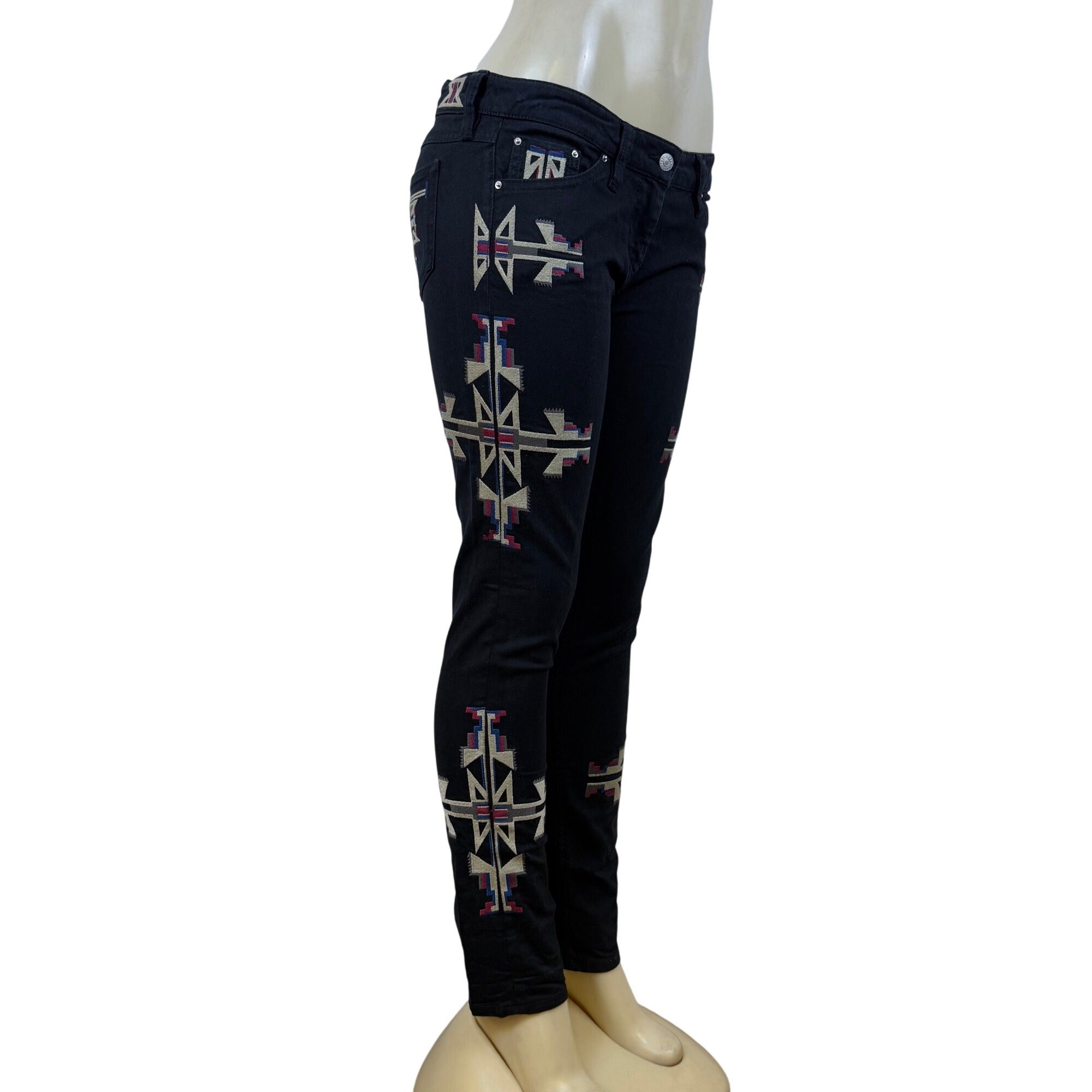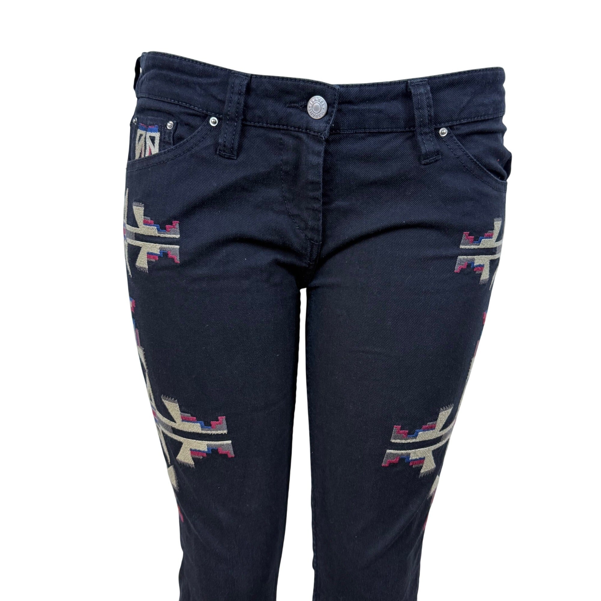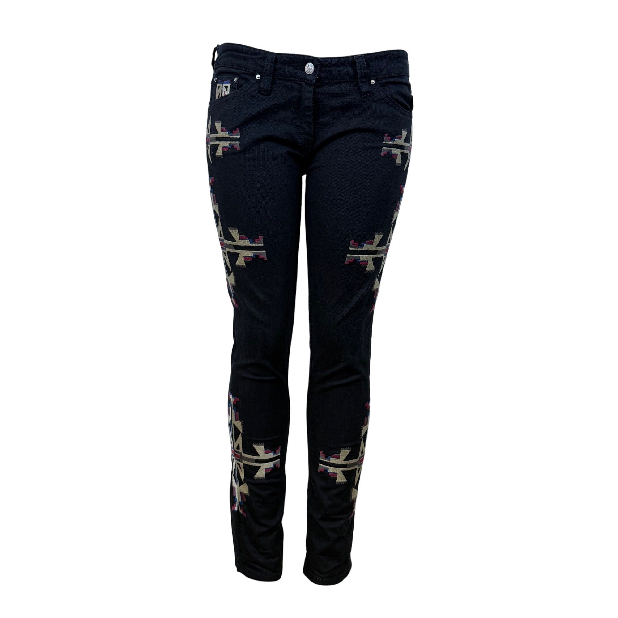 Isabel Marant Women’s Black Cotton-Elastane Embroidered Skinny Jeans Size 3