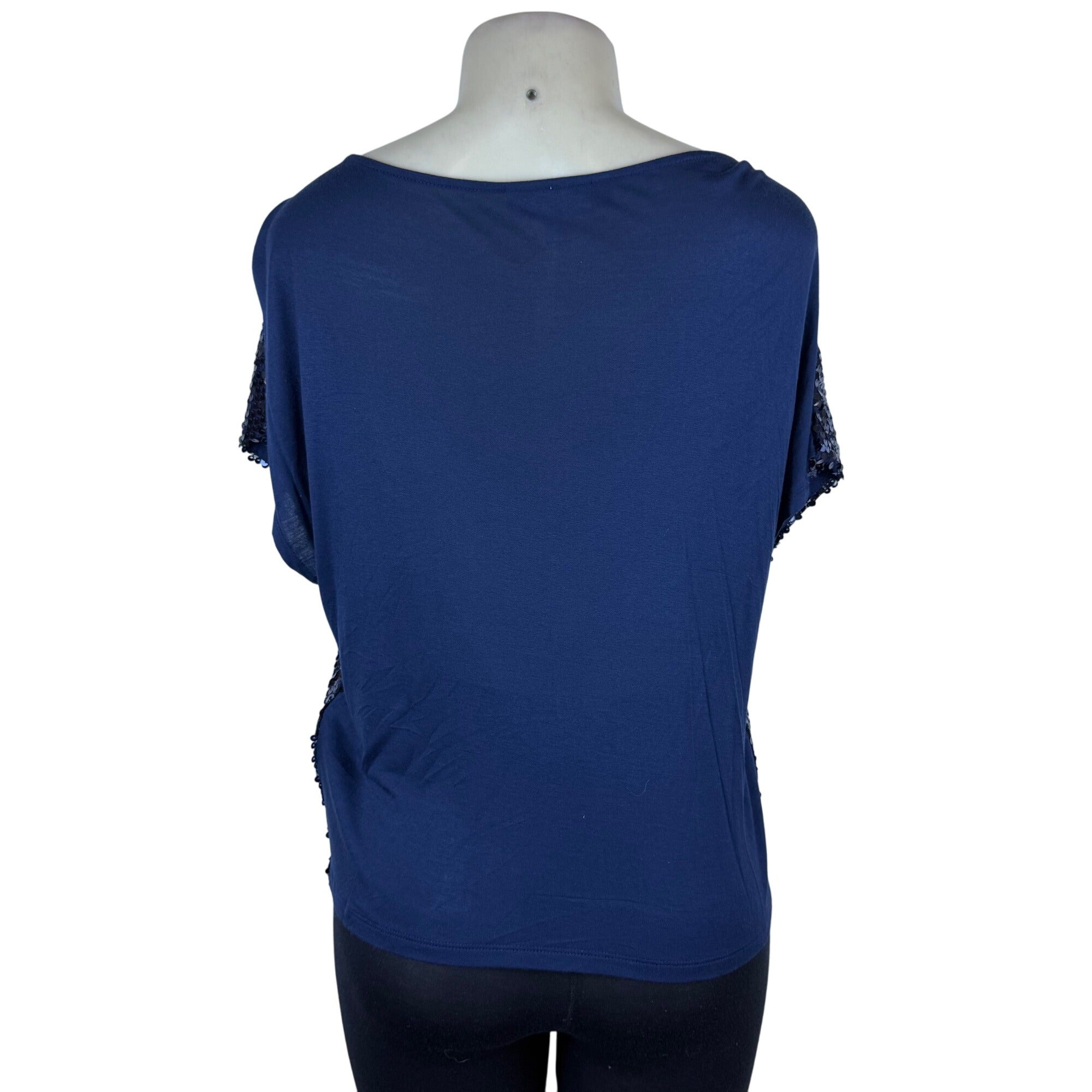 Jennifer Lopez Womens Navy Sequin Polyester Blouse Stunning Party Top Size M