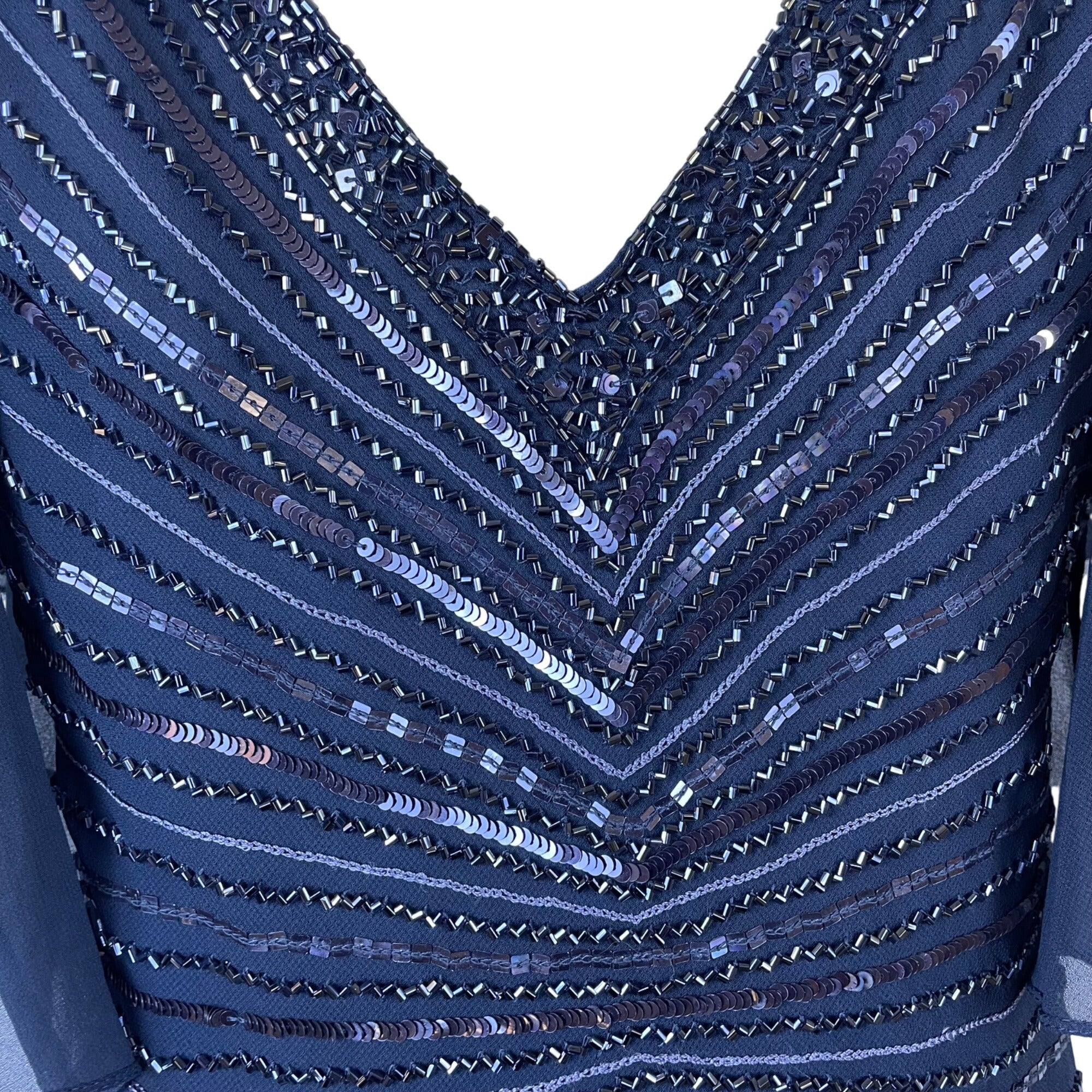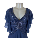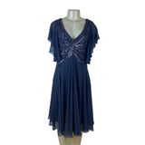Jkara Womens Navy Polyester Beaded Flutter Sleeve Chiffon Cocktail Dress Size 8